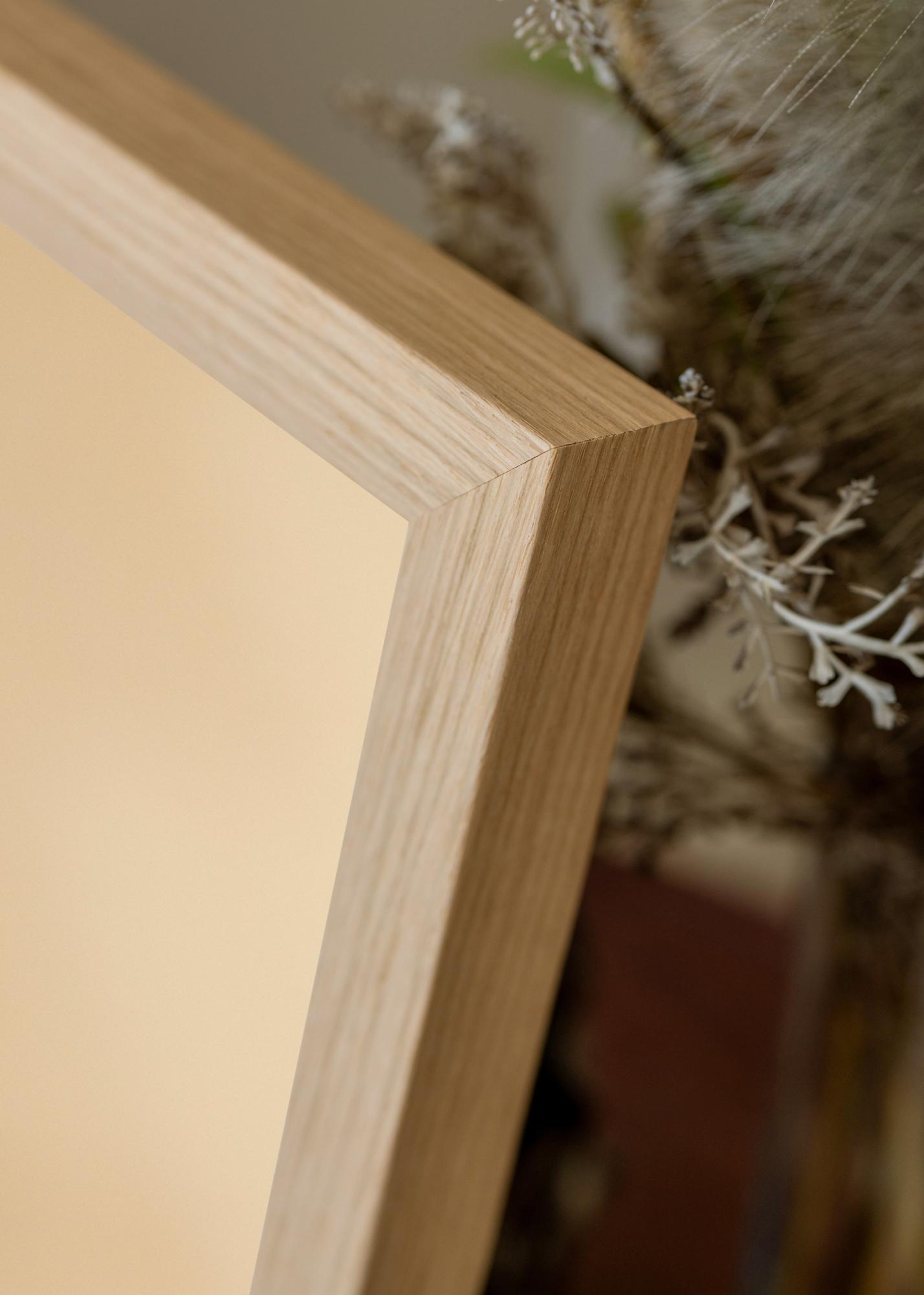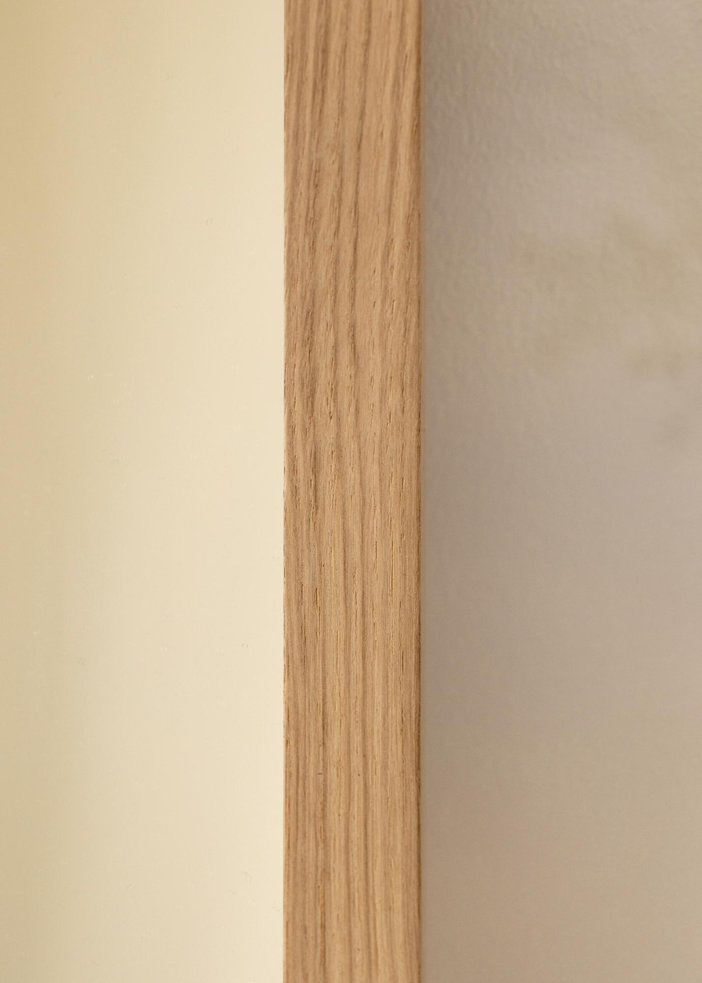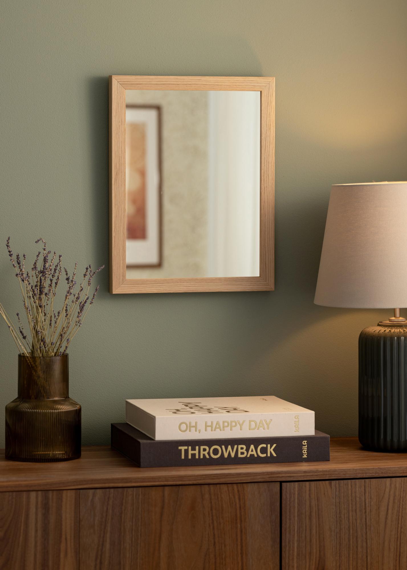 La cornice è realizzata in pino, il che la rende sia durevole che leggera. La profondità di 32 mm conferisce allo specchio una costruzione stabile e garantisce che rimanga fissato saldamente alla parete. La tonalità calda del motivo di quercia mette in risalto il design senza tempo dello specchio e lo rende facile da abbinare a diversi stili di arredamento.