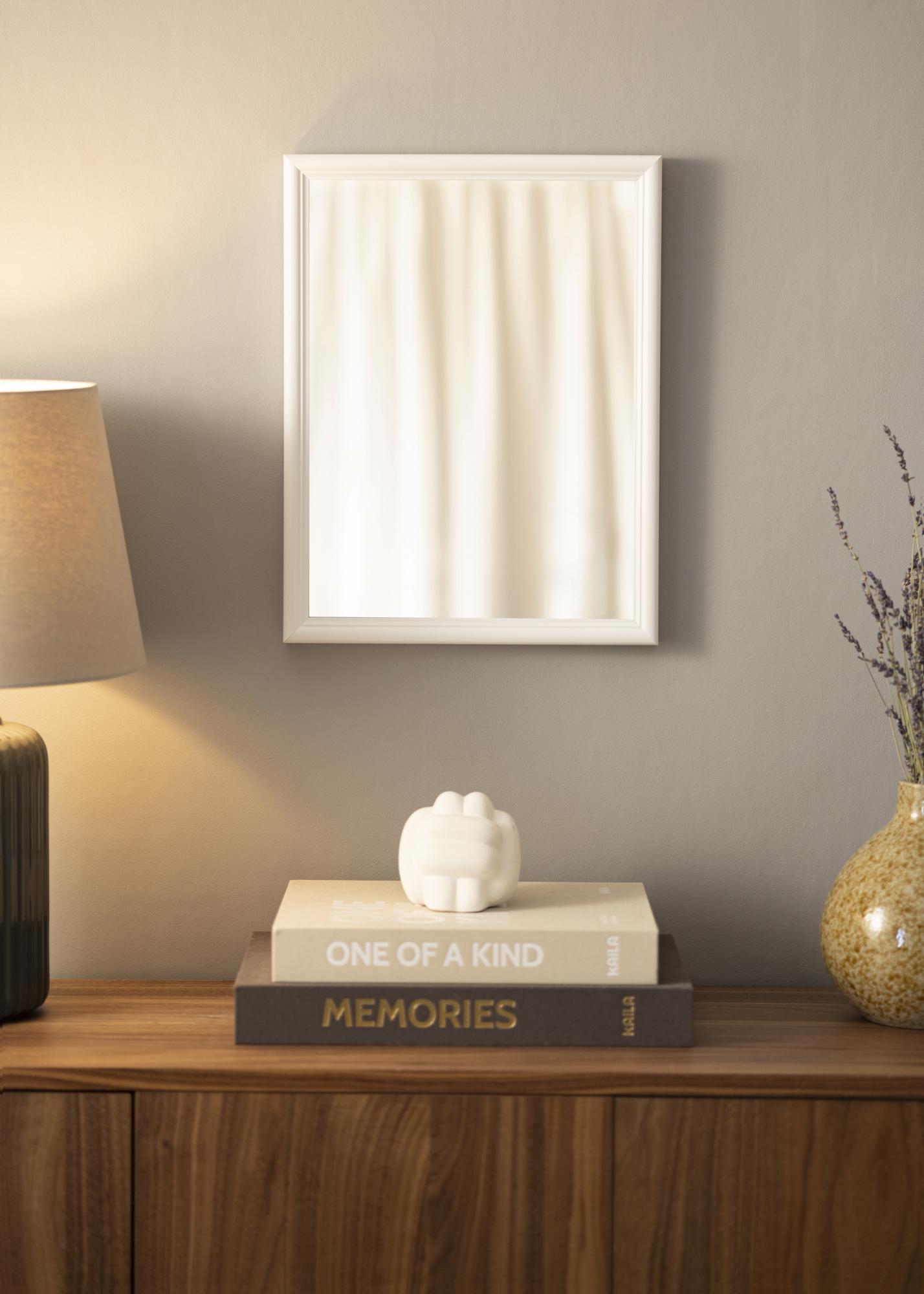 Högbo è uno specchio bianco profilato di alta qualità che si adatta perfettamente quando si cerca uno specchio elegante con un profilo profondo che sporge dal muro.