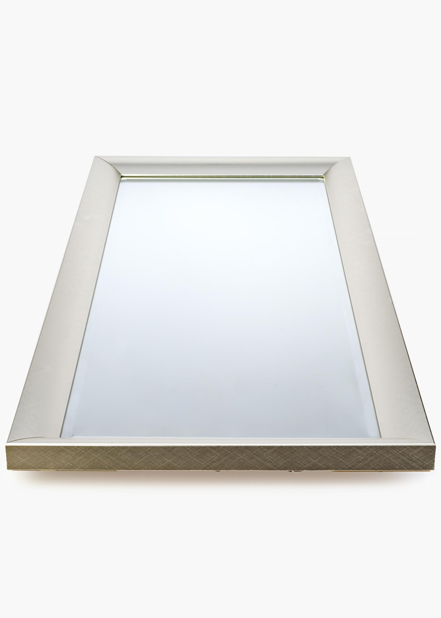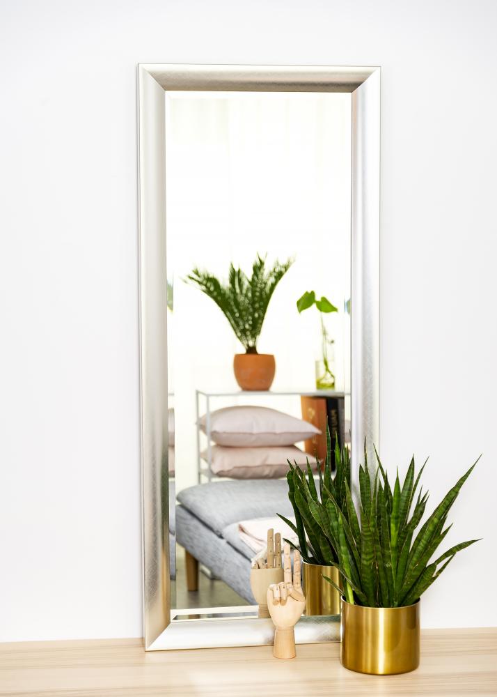 Aggiungi un tocco di lusso al tuo interno con questo elegante specchio! La superficie del telaio ha un motivo simmetrico spazzolato che, insieme ai bordi in vetro sfaccettato, crea una sensazione esclusiva. Scegli tra le dimensioni di 50x130 cm e 60x150 cm.