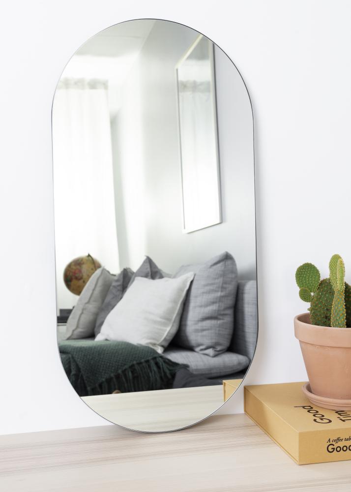 Elegante specchio ovale con dimensioni di 35x70 cm della House Doctor che può essere appeso sia verticalmente che orizzontalmente. Perfetto per esempio nell'ingresso o nell'armadio. Lo specchio è certificato per l'uso in ambienti umidi e può quindi essere utilizzato anche in bagno.