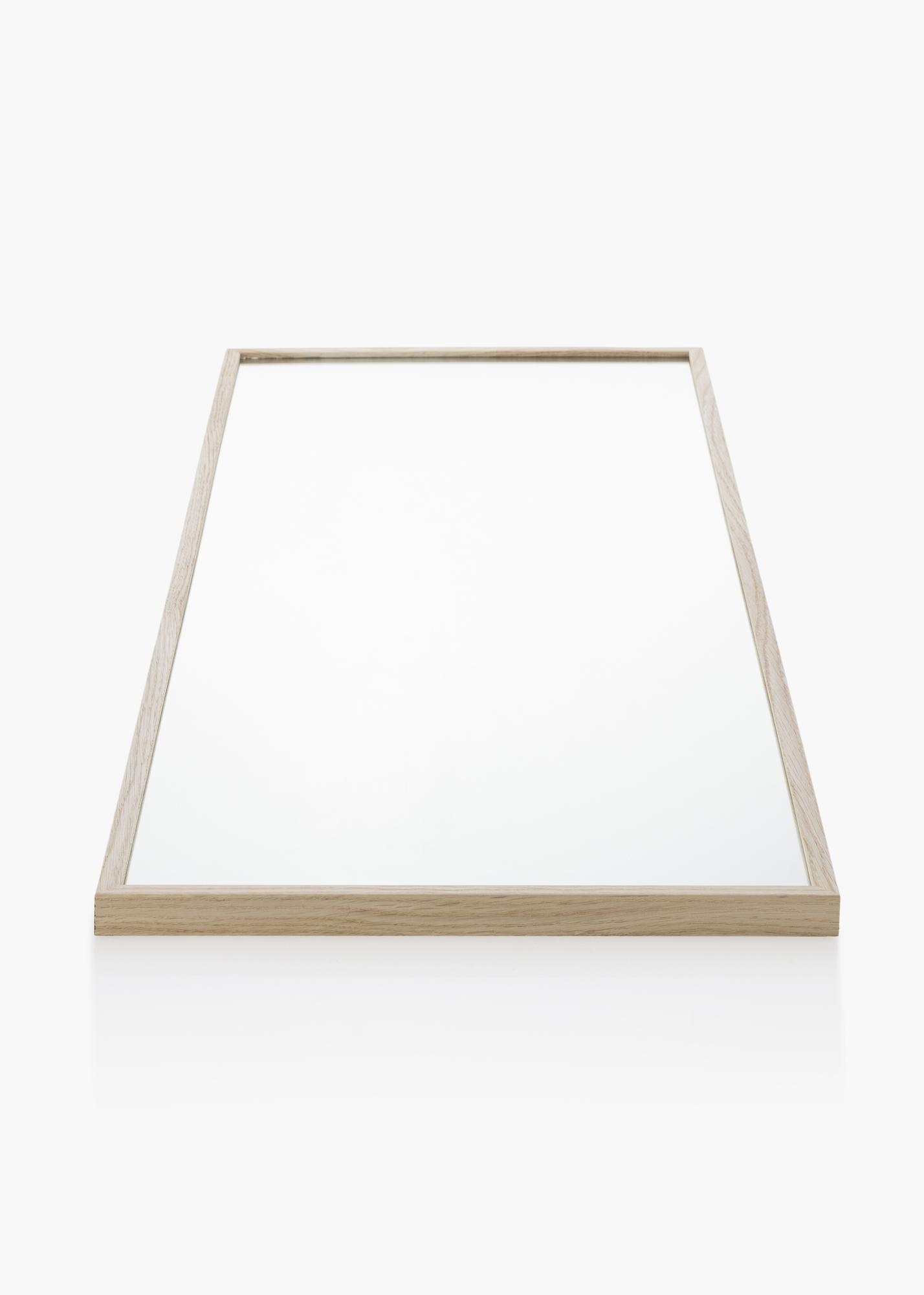 Questo è uno specchio da parete con una sottile cornice in legno, adatto sia per case moderne che più bohémien. Lo specchio è una dimostrazione del design scandinavo al suo meglio, con vetro specchiato incolore e una cornice in legno chiaro con profilo retto, che insieme conferiscono un aspetto luminoso e elegante.