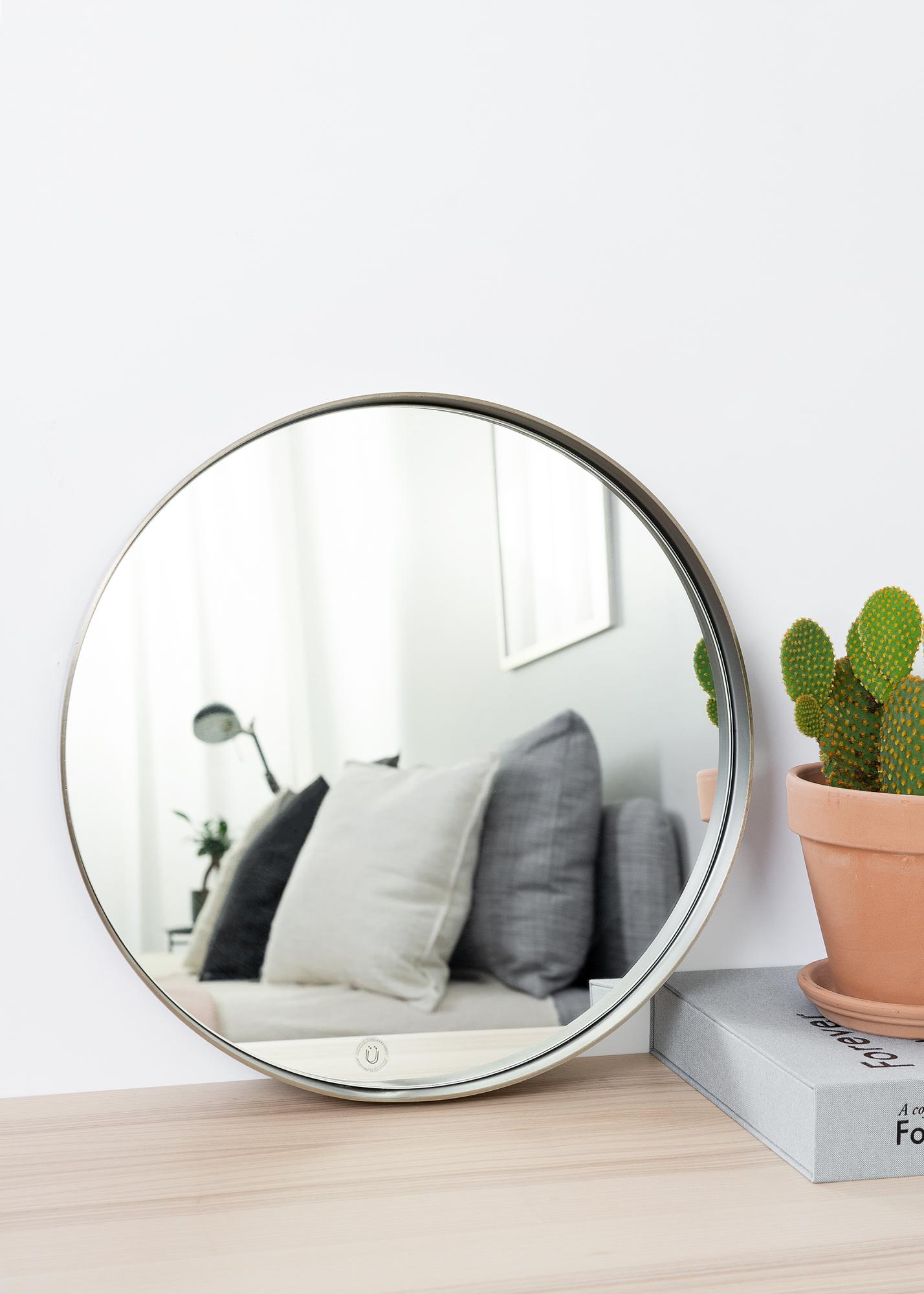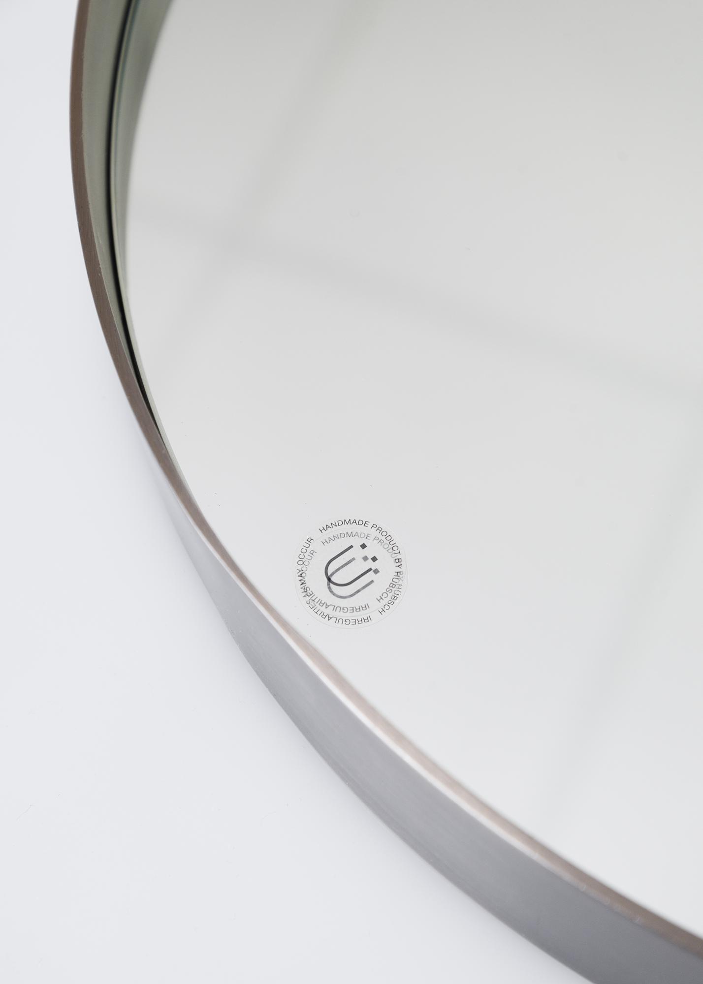 Questo specchio rotondo proviene dal marchio danese Hübsch. La sottile cornice metallica conferisce allo specchio un aspetto elegante, mentre il bordo alto contribuisce a creare un interessante effetto di riflessione.