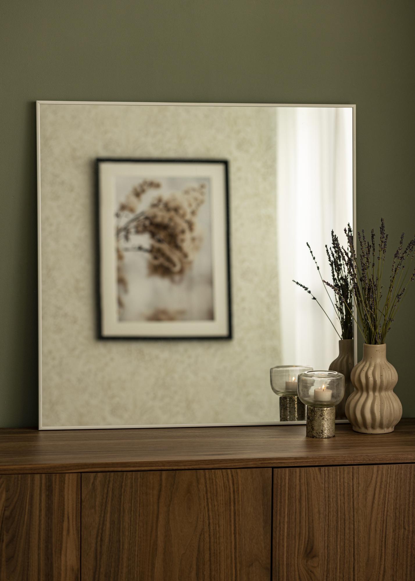 Scopri l'eleganza raffinata del nostro specchio rettangolare, perfetto per aggiungere una sensazione di spazio e luce alla tua casa. Con le sue generose dimensioni di 75x75 cm, lo specchio offre una funzione pratica e decorativa in ogni stanza. La sua cornice in alluminio bianco aggiunge un tocco moderno mantenendo il suo fascino senza tempo.