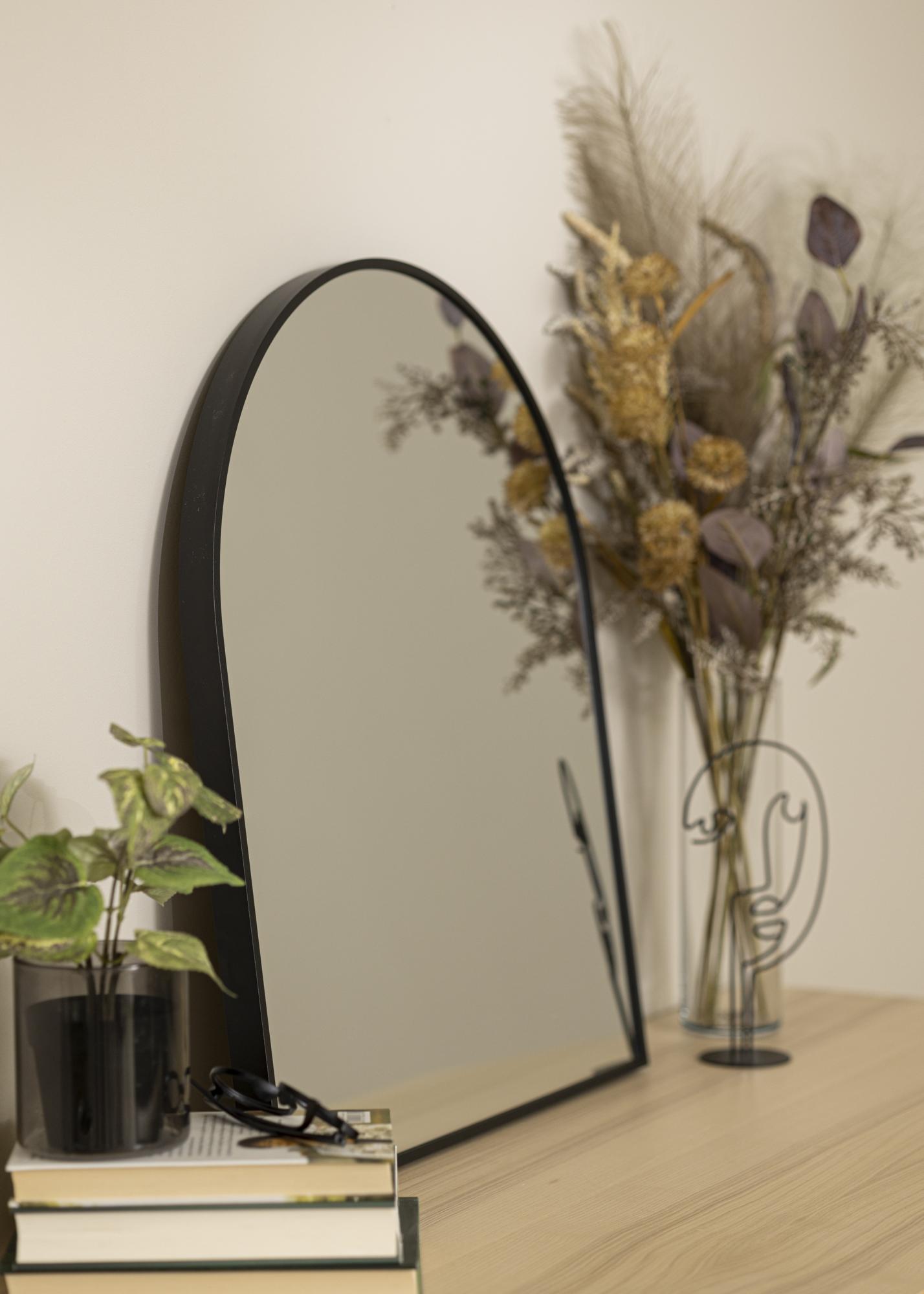 Questa è una scelta eccellente per coloro che cercano uno specchio dal design moderno con una forma ad arco trendy e una cornice nera elegante. La cornice dello specchio ha una profondità di 28 mm ed è realizzata in metallo. Questo specchio diventerà un dettaglio decorativo indispensabile nell'ingresso o nel soggiorno, dove rifletterà la luce da tutte le fonti luminose della stanza in modo splendido. Il materiale resistente permette anche di utilizzarlo in bagno.