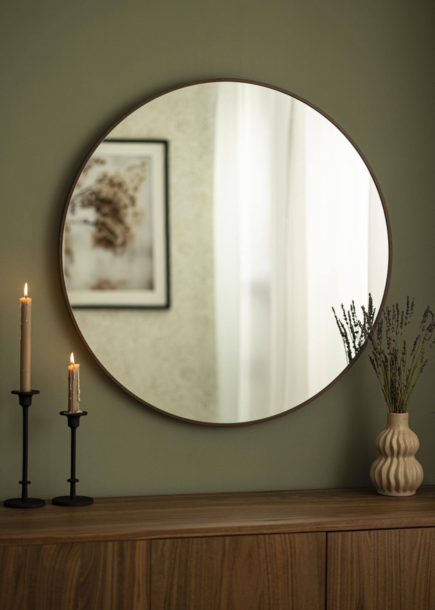 Scopri l'eleganza sobria con il nostro specchio sospeso a parete, perfetto per aggiungere una sensazione di spaziosità e luce alla tua casa. Con un'impressionante diametro di 80 cm, questo specchio è un attiratore di sguardi in ogni stanza. La sua forma rotonda dona una sensazione morbida e accogliente, mentre la cornice in alluminio color noce aggiunge un tocco di sofisticazione.