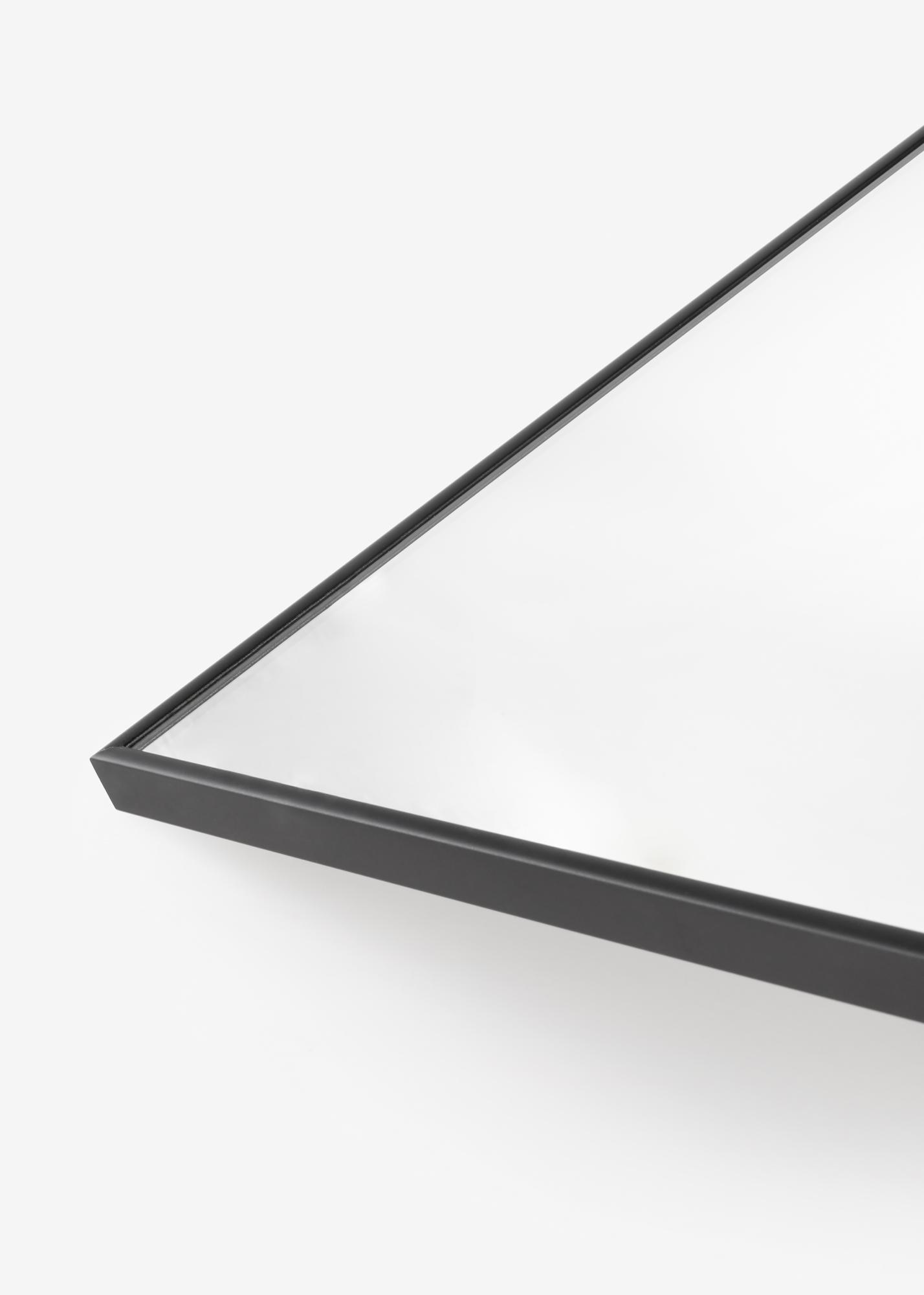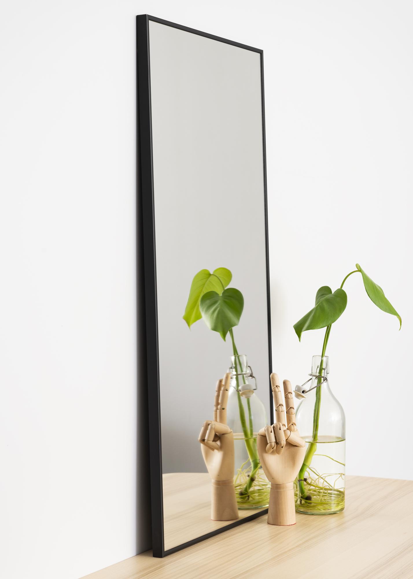 Avvia il selezionatore di cornici »Uno specchio elegante con cornice in alluminio nero. Lo specchio è dotato di supporti da parete intelligenti, che lo rendono facile da appendere.