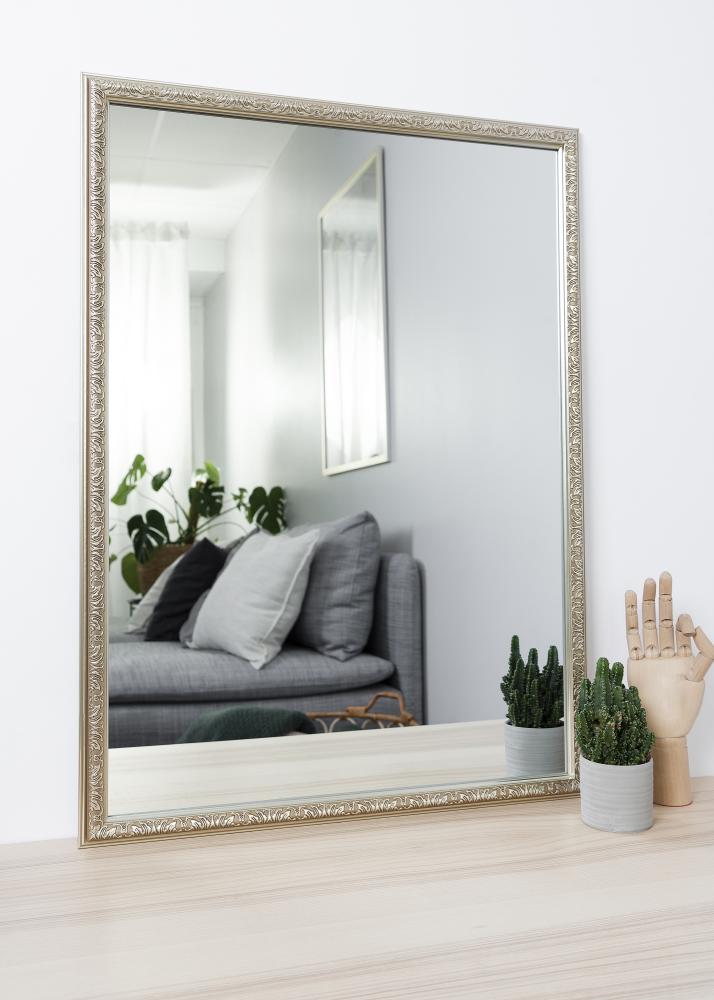Lascia che questo specchio senza tempo adorni le pareti della tua casa. La cornice color argento ha un profilo unico ed è decorata con bellissimi ornamenti. Il suo aspetto classico lo rende un'ottima aggiunta a quasi tutte le stanze e si adatta bene sia da solo che come elemento interessante nella parete delle tele!