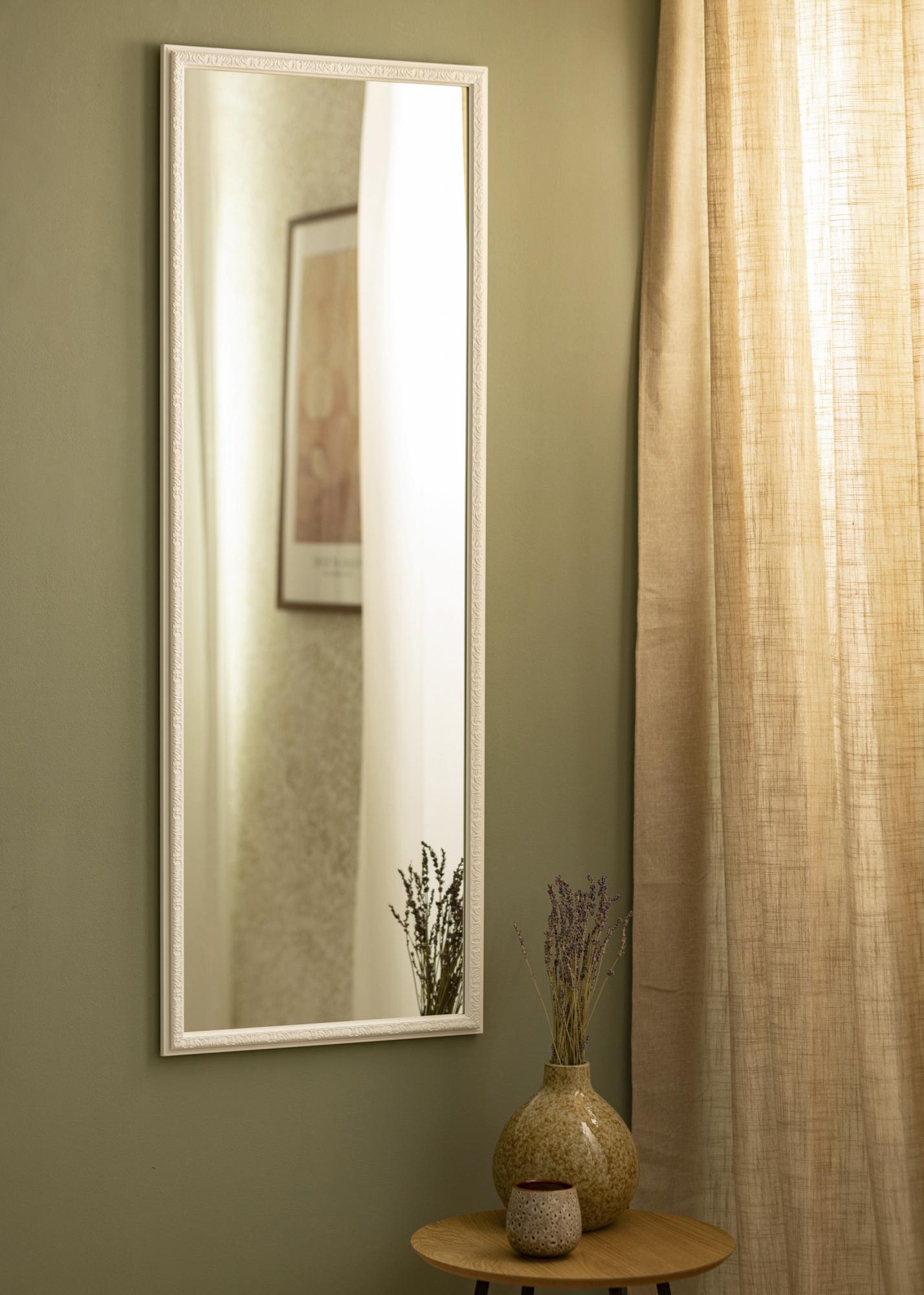 Questo specchio da parete è un elegante dettaglio d'arredo che riflette la luce proveniente da tutte le fonti luminose della stanza. La cornice bianca dona un'impressione luminosa e fresca, perfettamente completata dal profilo decorativo e dai bellissimi motivi della cornice stessa.