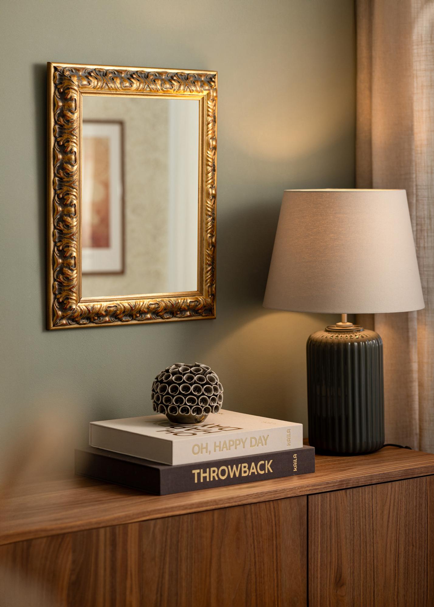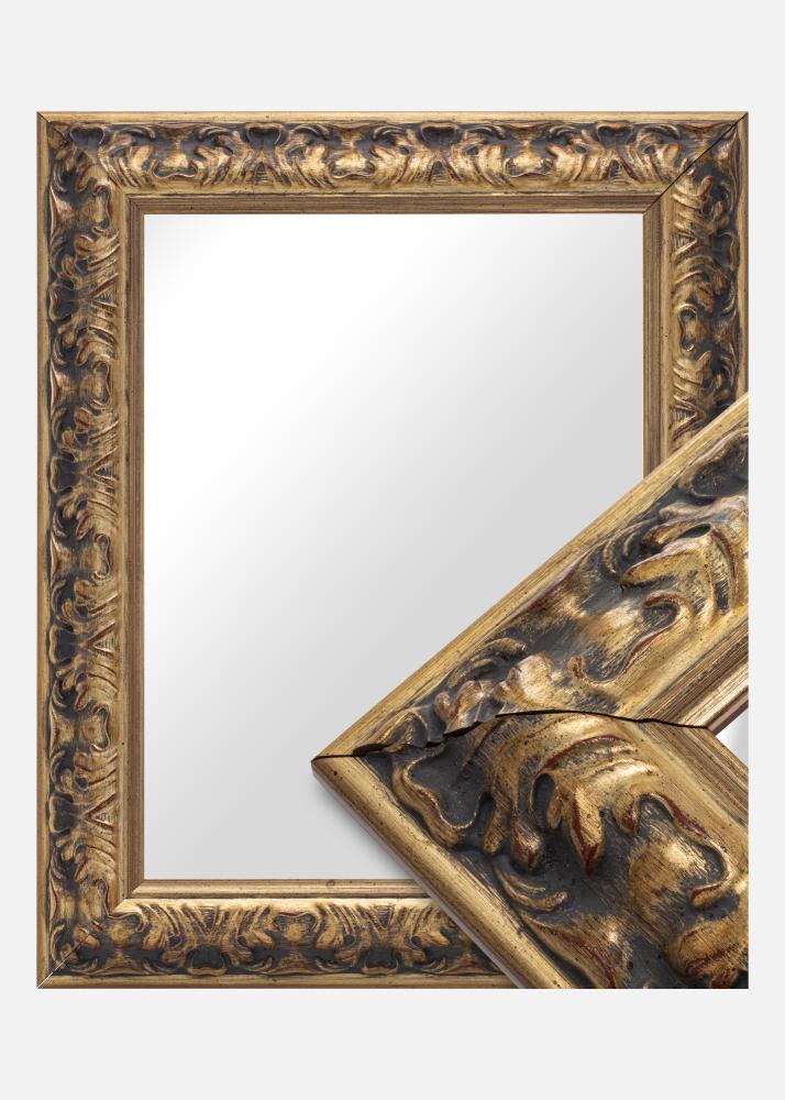 Specchio Odin Oro/Rosso è uno specchio elegante e raffinato che viene realizzato secondo le tue misure. Con la sua cornice dorata e ornata e la patina antica, diventa un elemento accattivante in qualsiasi stanza. La cornice, larga 64 mm e con una profondità di 38,5 mm, è realizzata in pino e decorata con dettagli in stile barocco. I motivi scolpiti in rilievo conferiscono allo specchio un carattere unico e sono valorizzati da un contrasto sottile tra oro e accenti scuri.