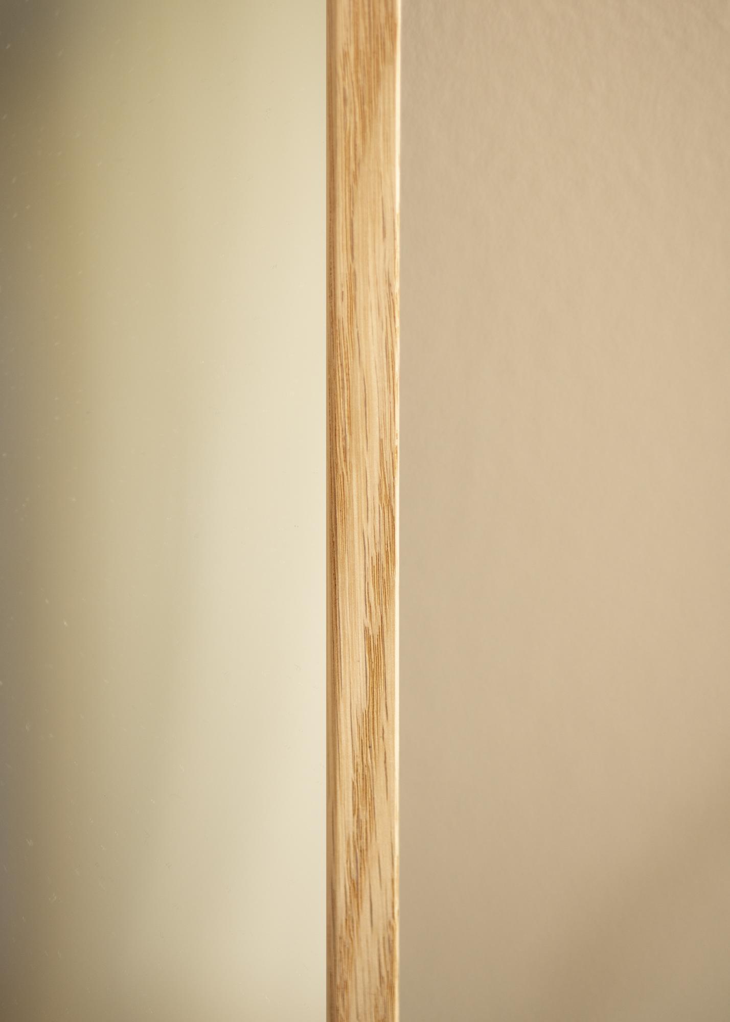 La cornice in legno larga 12 mm dà allo specchio una cornice elegante senza dominare la stanza. Il design sottile permette allo specchio di integrarsi nella maggior parte degli ambienti, aggiungendo allo stesso tempo una sensazione di spazio e luce. Con una profondità di 18 mm, lo specchio ha una struttura robusta che garantisce una stabile sospensione alla parete.