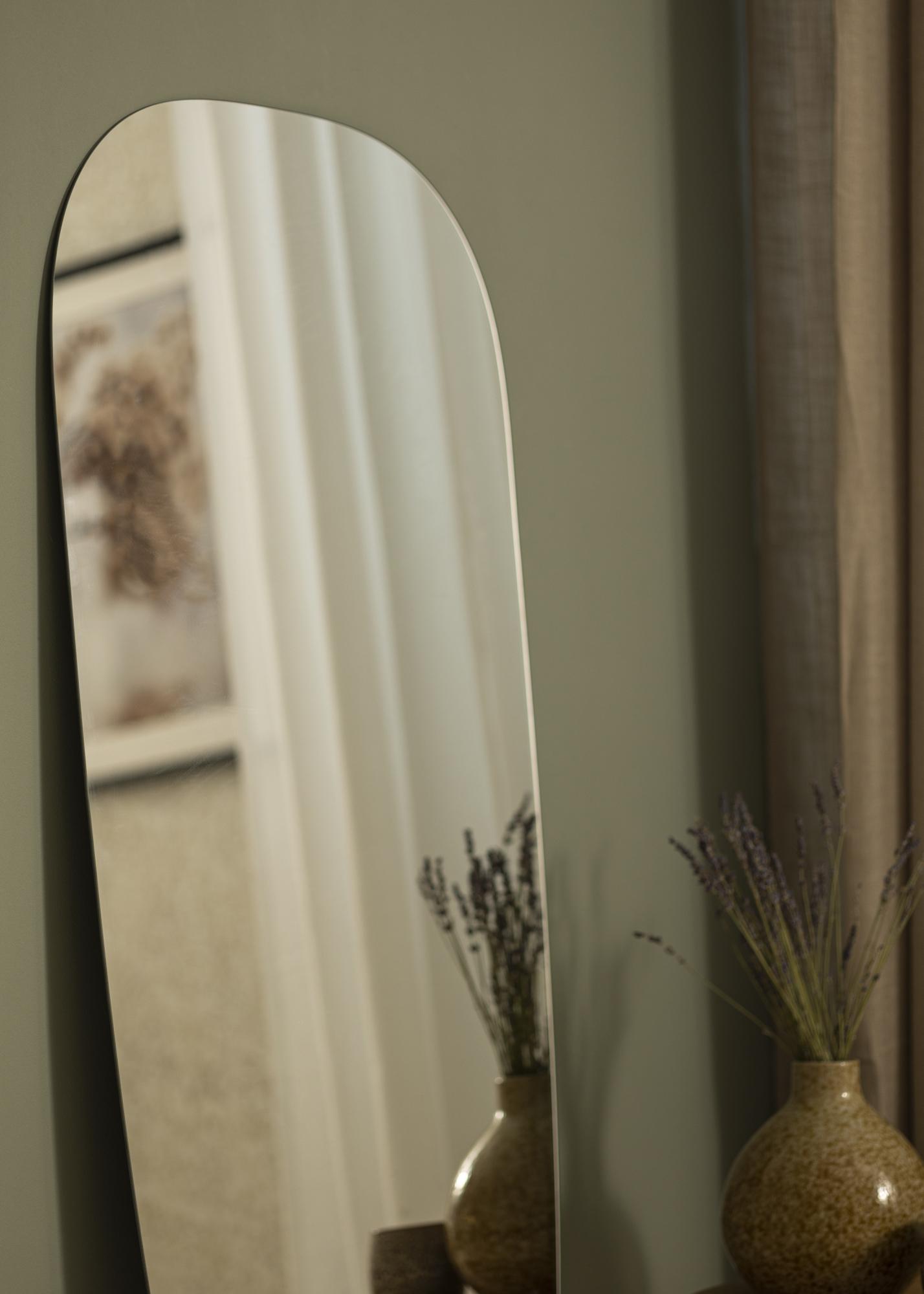 Questo specchio è progettato per essere appeso in verticale, rendendolo ideale per pareti più strette o spazi dove lo spazio orizzontale è limitato. La forma fluida e organica crea un'atmosfera morbida e accogliente nella stanza, mentre funge da componente pratica e decorativa. Il design dello specchio è studiato attentamente per fondersi con diversi stili di arredamento, dal minimalista al più tradizionale.