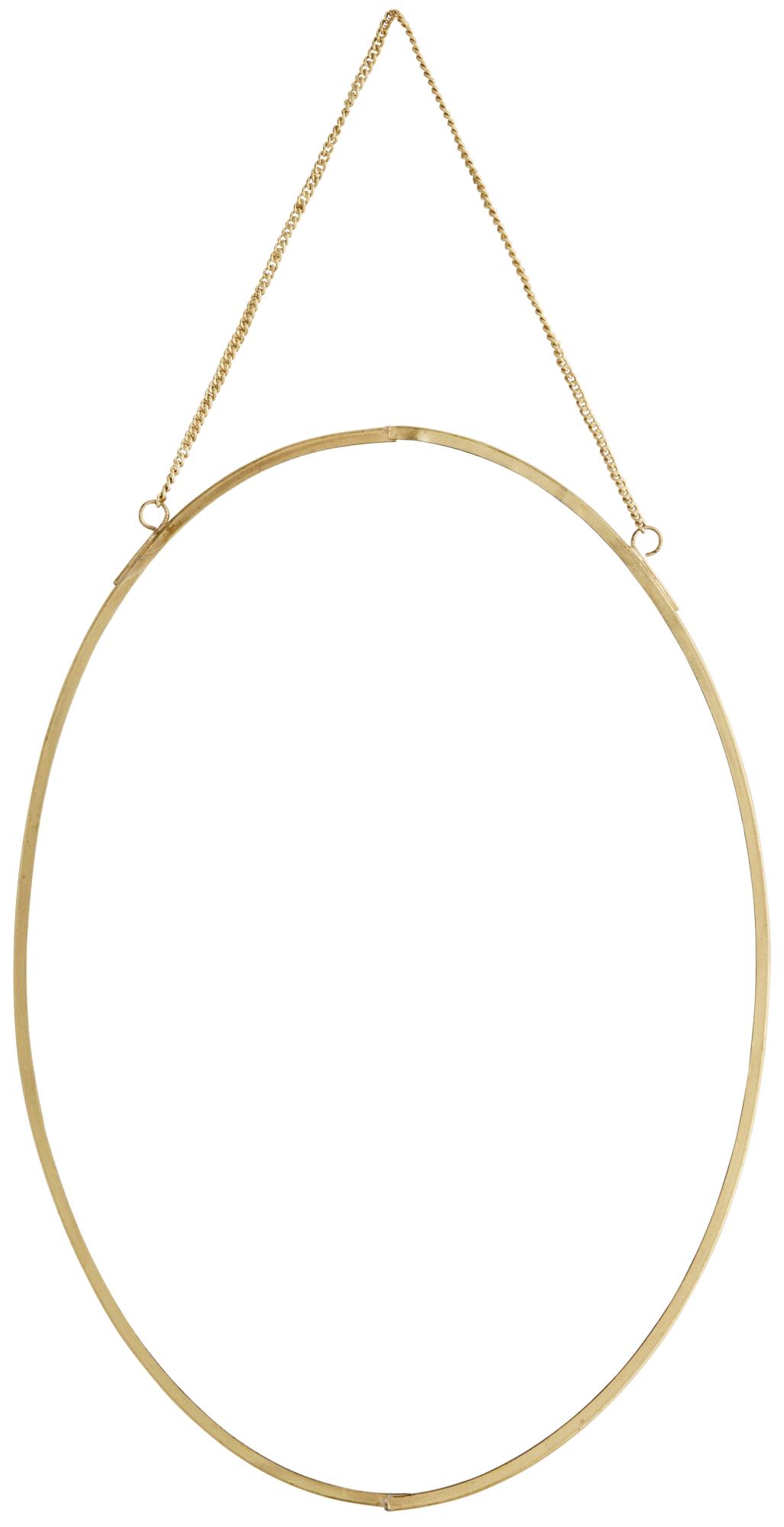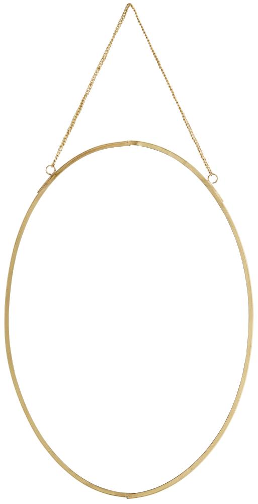 Specchio ovale di Madam Stoltz, con cornice color ottone. Lo specchio viene appeso a una catena - anch'essa in ottone, che gli conferisce un'espressione extra elegante che si adatta perfettamente al salotto o alla camera da letto. Lo specchio da parete misura 21x30 cm. La dimensione compatta rende lo specchio da parete molto bello da abbinare ad altri modelli di specchi. Lo specchio è fatto a mano, il che significa che ogni singolo articolo può variare leggermente nell'aspetto.