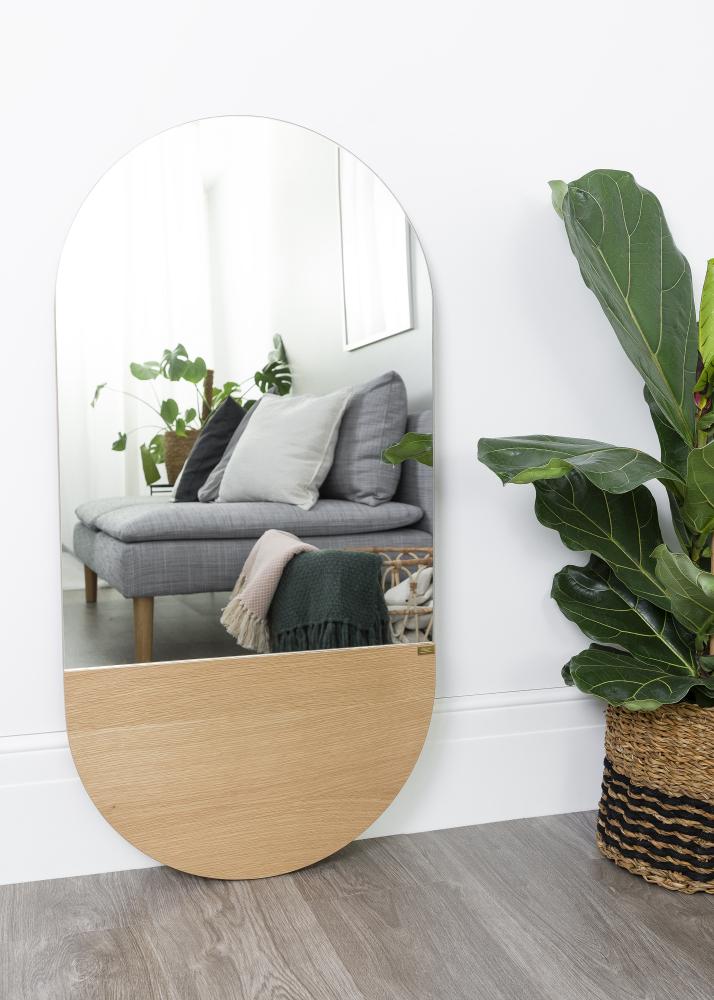 Questo specchio ovale da parete della danese Hübsch è la prova che un design semplice e elegante può; avere un grande effetto sull'intero ambiente. Il retro dello specchio e la parte inferiore del fronte dello specchio sono rivestiti in Rovere, il che gli conferisce un aspetto naturale e caldo.
