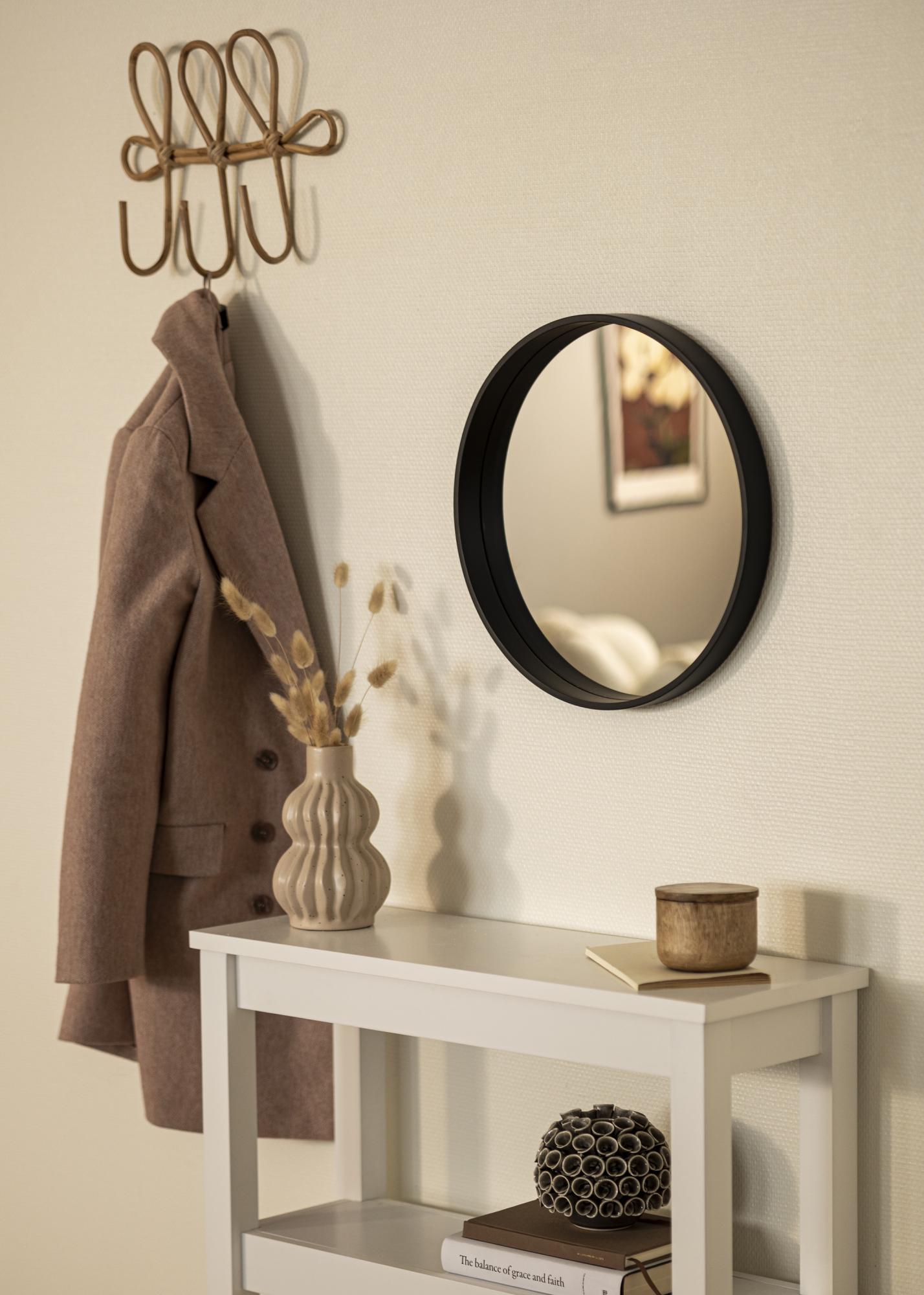 Scopri l'elegante semplicità del nostro specchio rotondo, un dettaglio d'arredo senza tempo che si adatta perfettamente ad ogni casa. Questo specchio rotondo di design si distingue per la sua cornice nera, che dona un'aria fresca e moderna all'ambiente. Il suo design essenziale lo rende adatto a diversi stili d'arredamento, dallo stile scandinavo a quello industriale.