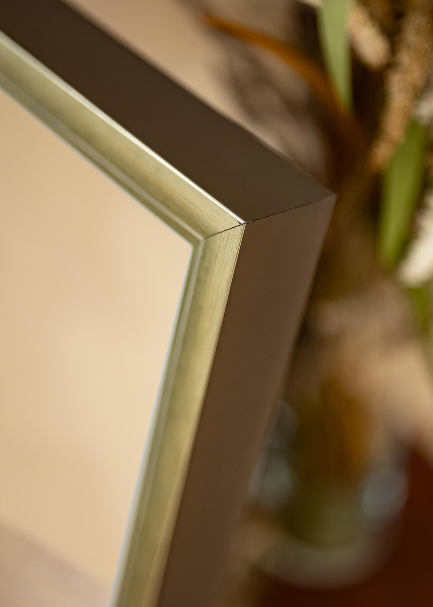Specchio classico in cui puoi scegliere le dimensioni dello specchio che desideri. Con il suo profilo largo e profondo, questo è uno specchio che si fa notare. Lo specchio ha una tonalità di grafite argentata con piacevoli sfumature di colore.