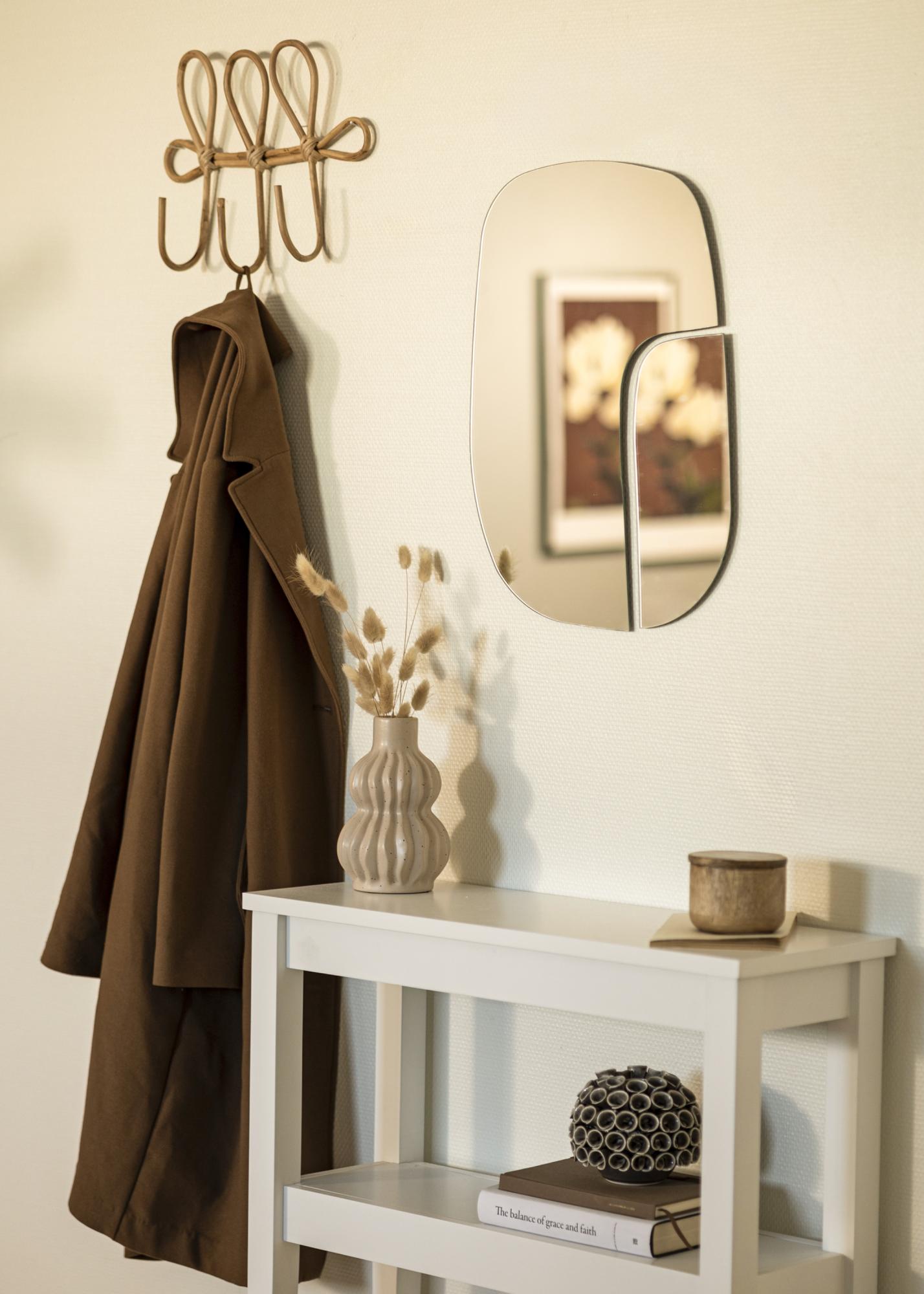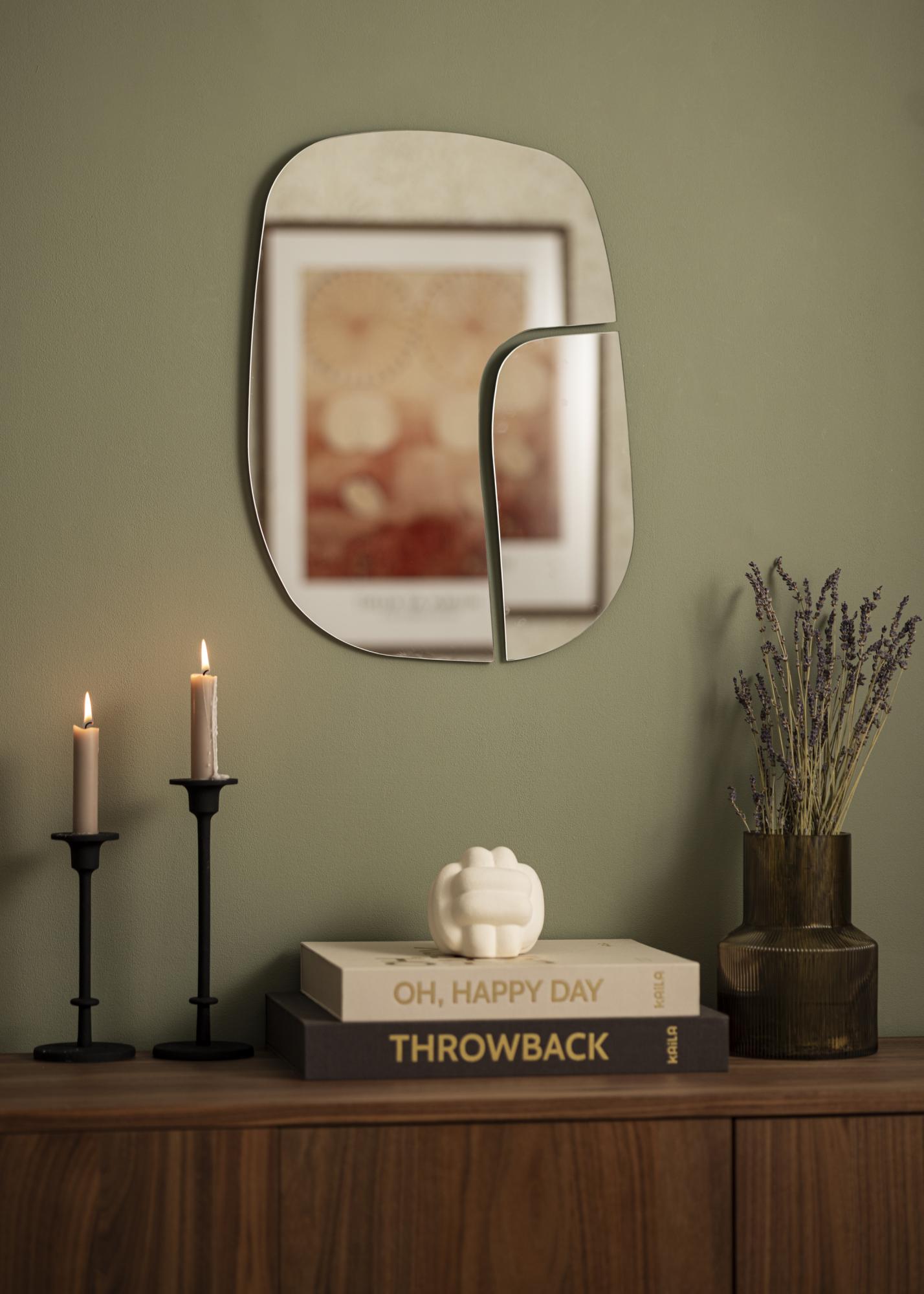Scopri una nuova dimensione di stile con questo set di specchi che offre una estetica unica per la tua casa. Con due specchi che insieme creano una forma rettangolare con angoli morbidi e un lato distintivo convesso, questo set diventa un'opera d'arte contemporanea sulla tua parete. Il design moderno non solo dà l'illusione di più spazio, ma anche un elemento di design che cattura l'occhio.