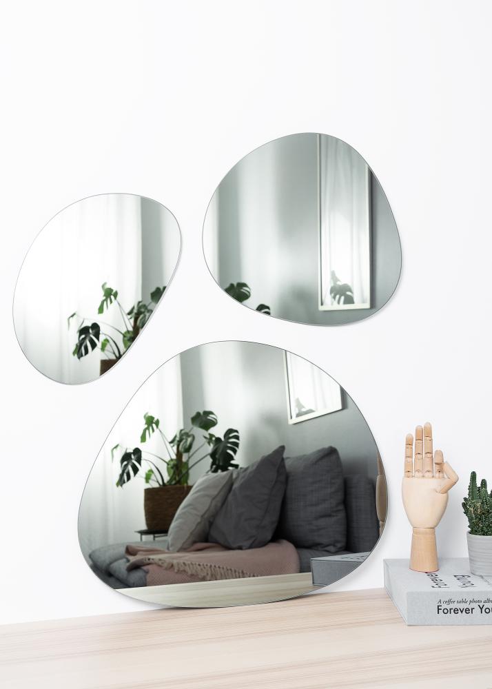 Questo set di specchi proviene dall'azienda danese Incado e ciò significa che sono di alta qualità e di grande tendenza. Il fatto che siano realizzati in vetro specchiato tonalità grigio caldo li rende ancora più affascinanti e il design con le diverse dimensioni è divertente.