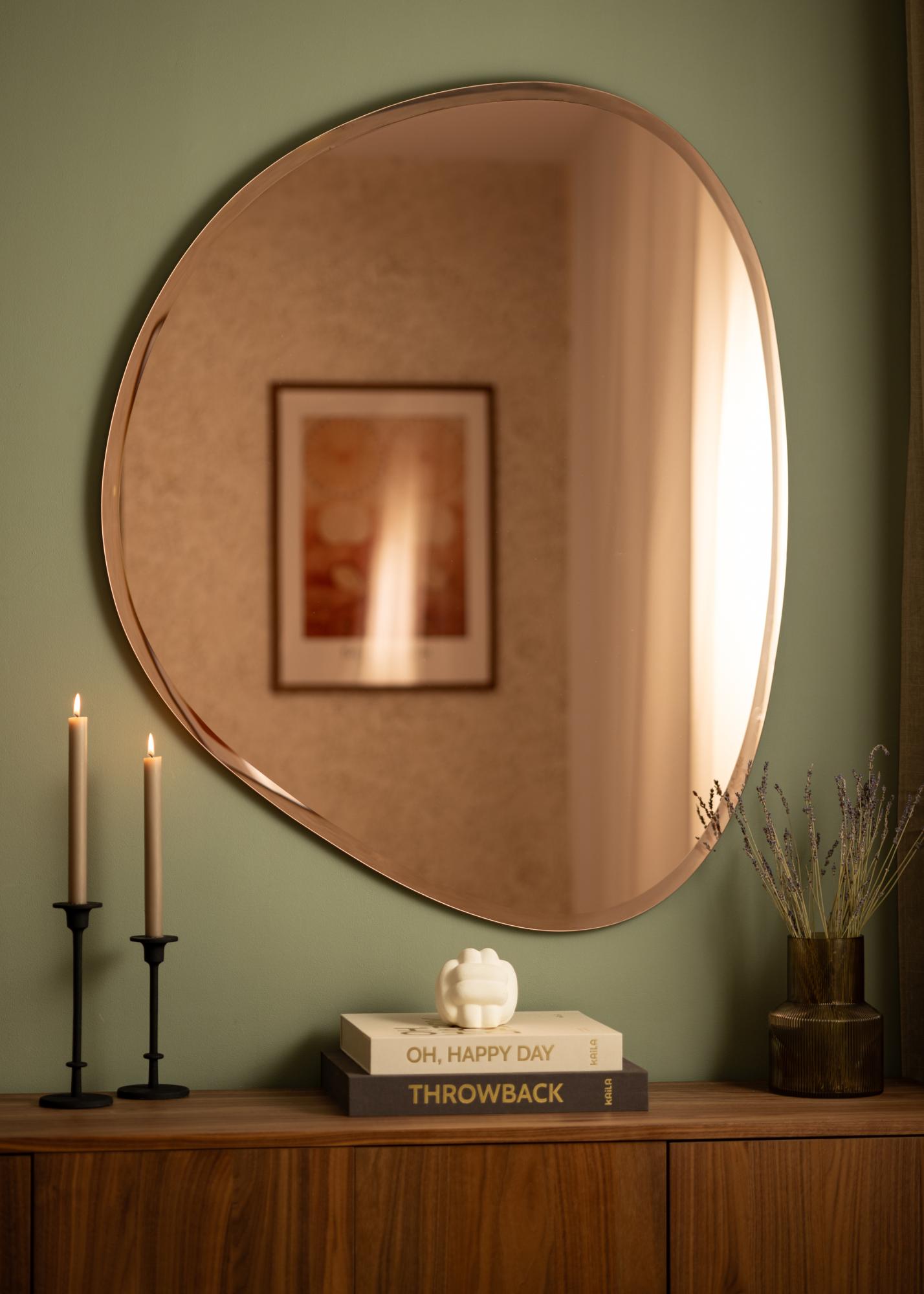 Questo bellissimo specchio di 95x110 cm ha un bordo sfaccettato ed è prodotto dall'azienda danese Incado. La lavorazione del bordo conferisce una sensazione di lusso e il vetro specchiato dal tono oro rosa rende questo specchio alla moda e elegante.