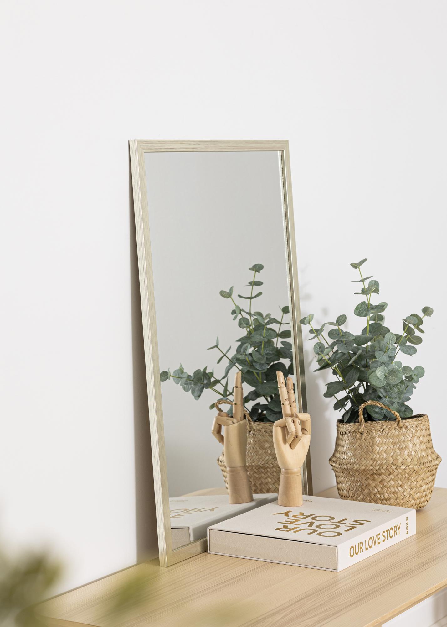 Questo specchio è realizzato in legno di ayo, dipinto in una raffinata tonalità argento. La cornice è larga 22 mm e ha un profilo retto, creando un'immagine complessiva leggermente essenziale. Posiziona lo specchio nell'ingresso, nella camera da letto o nel soggiorno e lascia che rifletta la luce delle lampade e delle finestre in modo splendido.