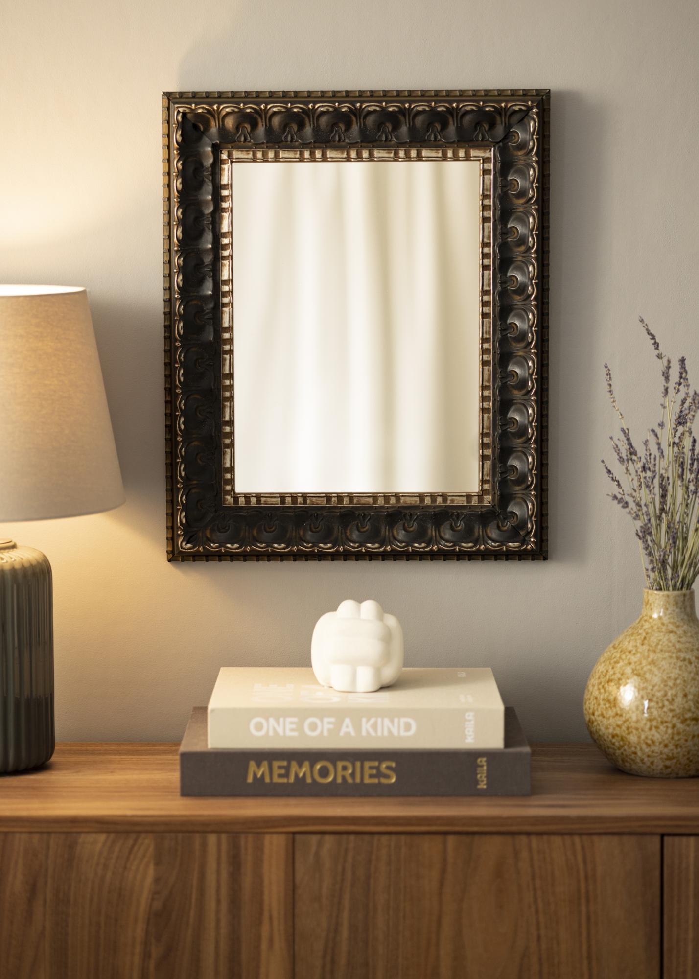 Cosa sarebbe la vita senza dettagli d'arredo straordinari che rendono le stanze lussuose? Questo specchio è uno di quelli. Il motivo variegato insieme alle sfumature di nero e oro attira l'attenzione e rende il tuo muro più vivace.