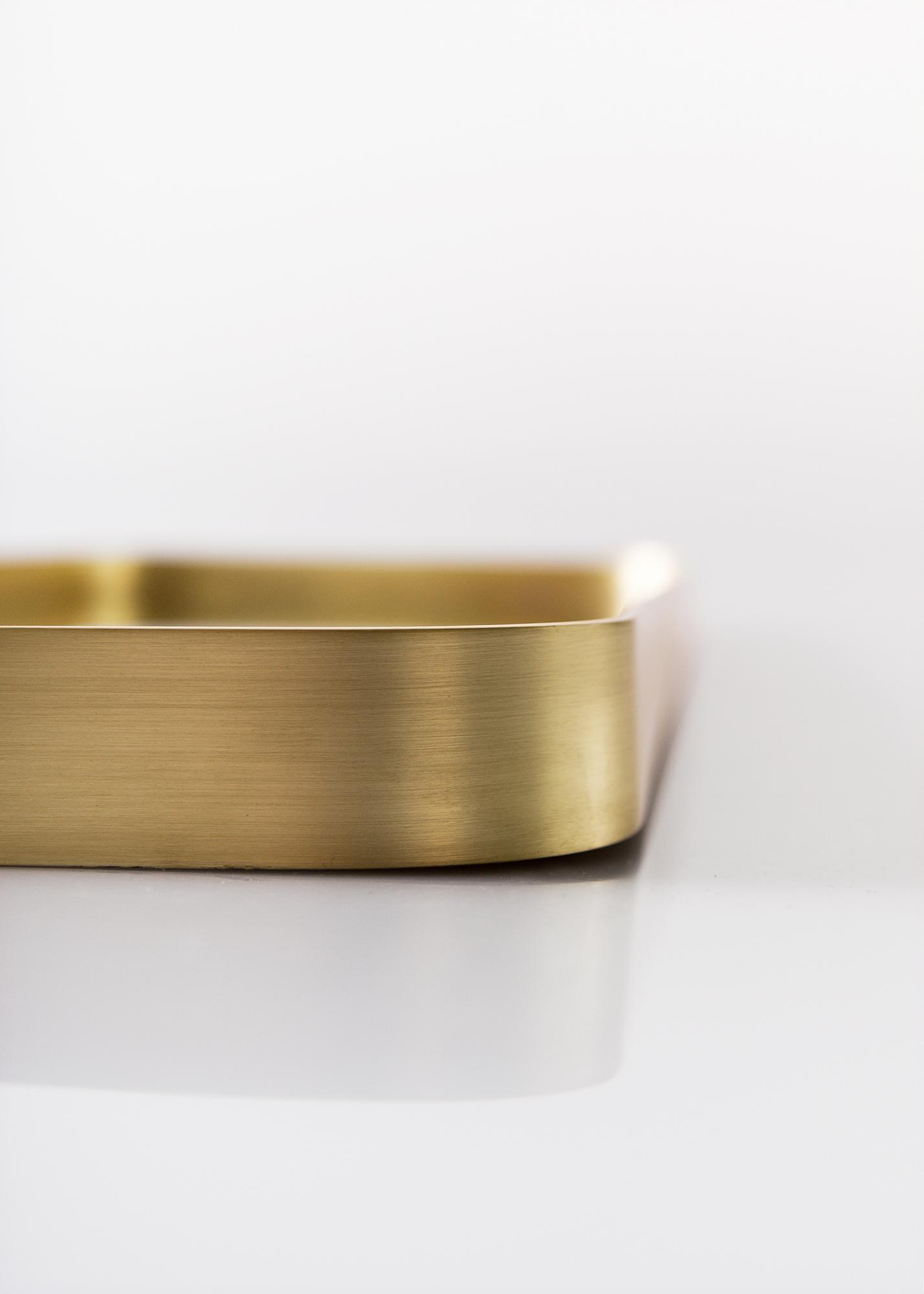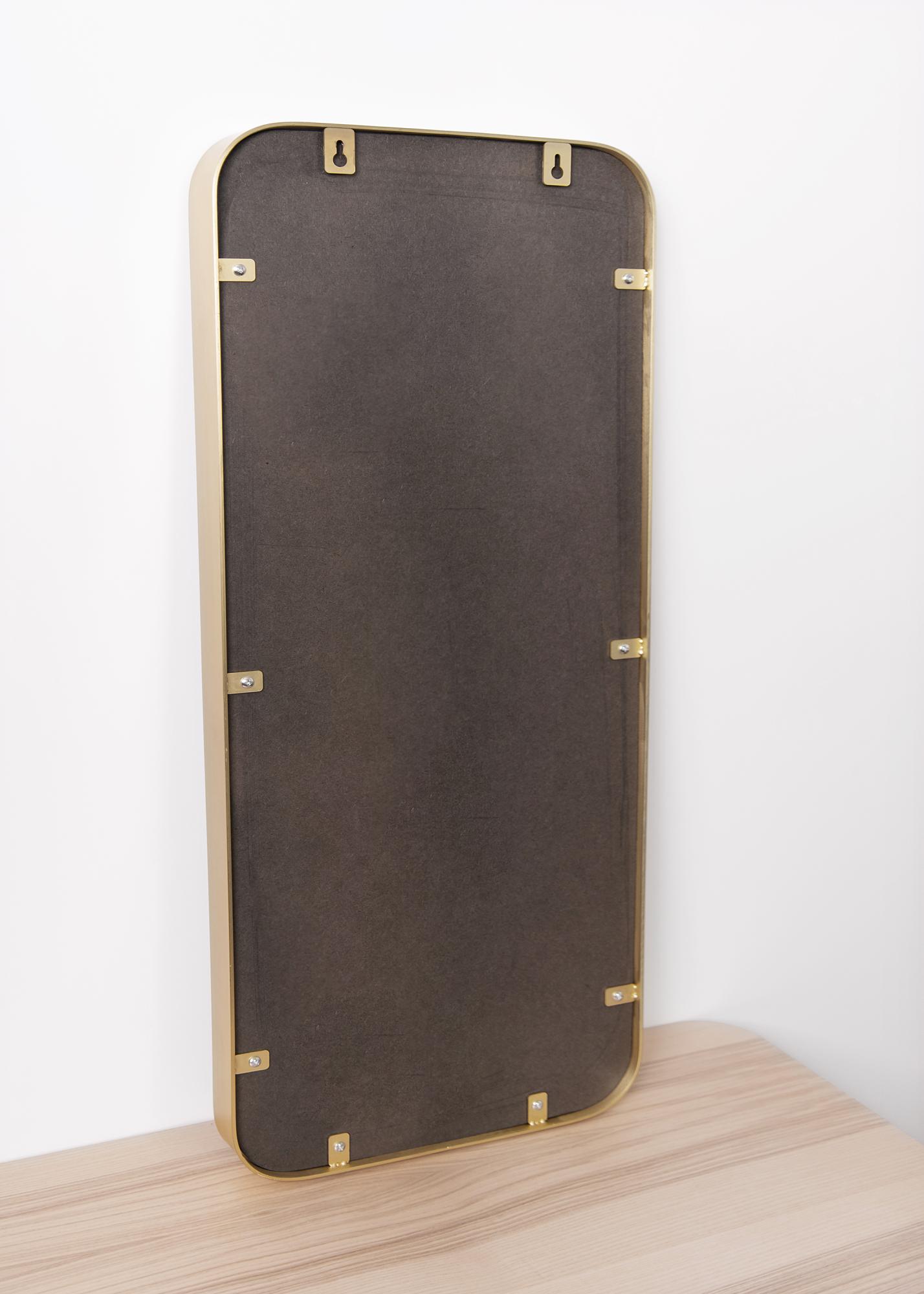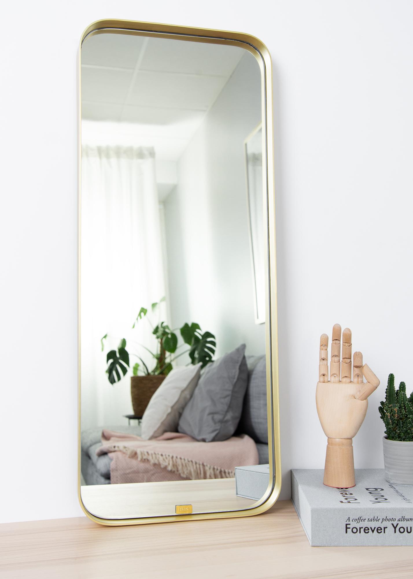 Uno specchio rettangolare dal design elegante danese. La cornice ha angoli arrotondati ed è realizzata in metallo con finitura in ottone, che conferisce morbidezza ed eleganza. Lo specchio può essere fissato al muro o semplicemente appoggiato al muro su una cassettiera o una mensola. Questo specchio di buon gusto proviene dalla compagnia danese Hübsch.