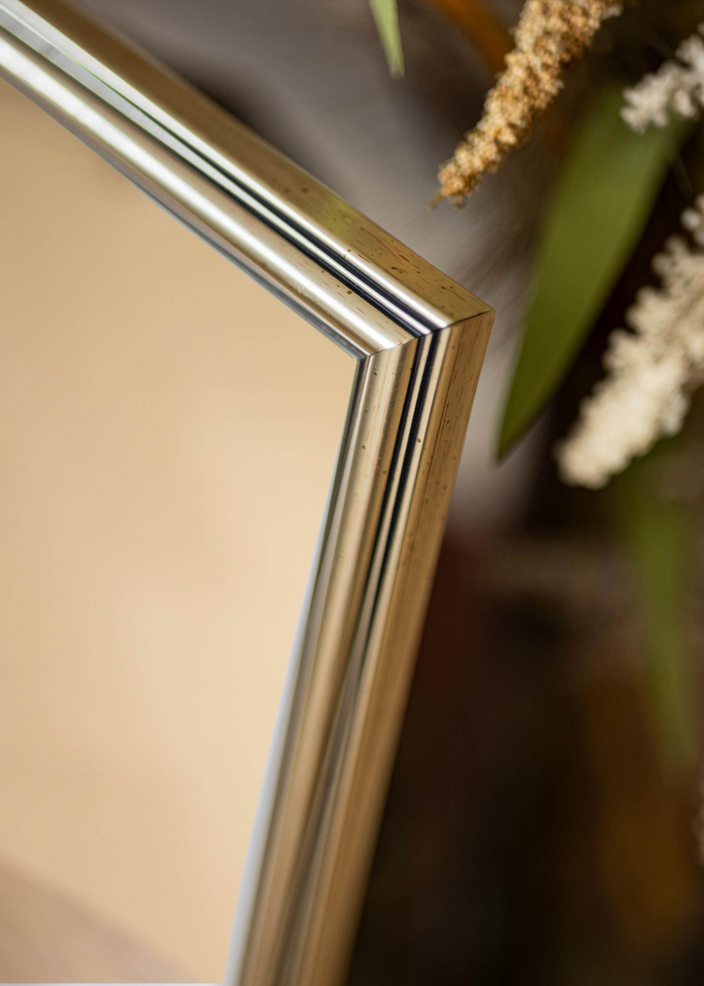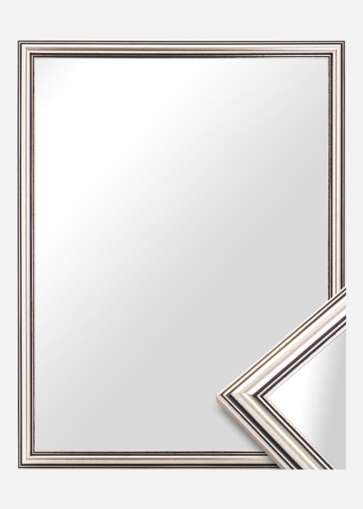 I componenti d'arredo argentati danno classe alla tua casa! Qui abbiamo uno specchio su misura con una cornice profilata. Lo specchio diventa ancora più bello abbinato a colori come nero, argento e viola. Essendo su misura, puoi essere sicuro che si adatti esattamente dove vuoi posizionarlo.