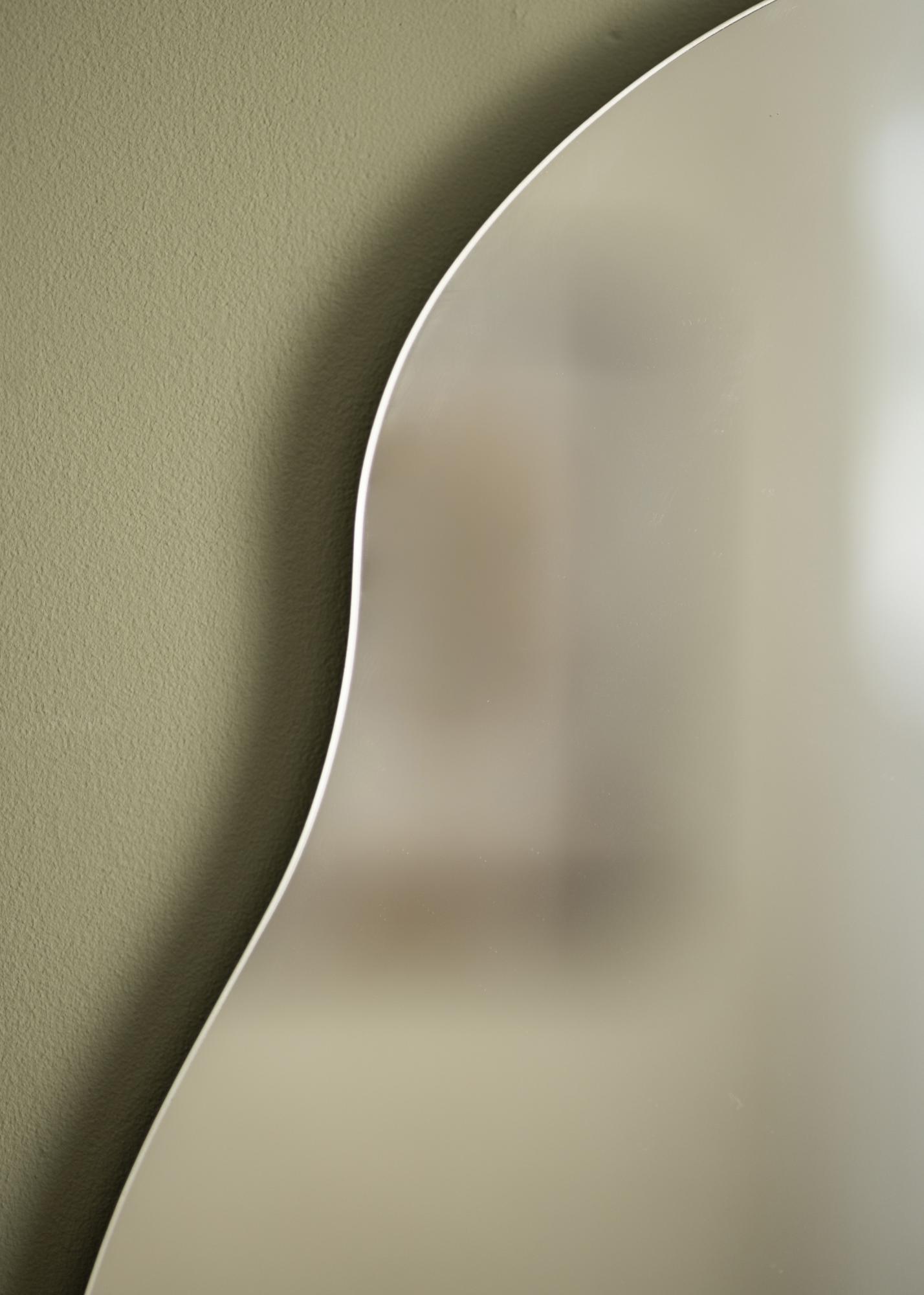 Thin Cloud è uno specchio sottile e lungo con una forma unica ondulata. Il design ondulato crea un'espressione morbida che si abbina bene con mobili dalle linee dritte, come tavoli, cassettiere e librerie. Questo specchio da parete misura 40x80 cm e può essere montato sulle pareti utilizzando il supporto a parete sul retro.