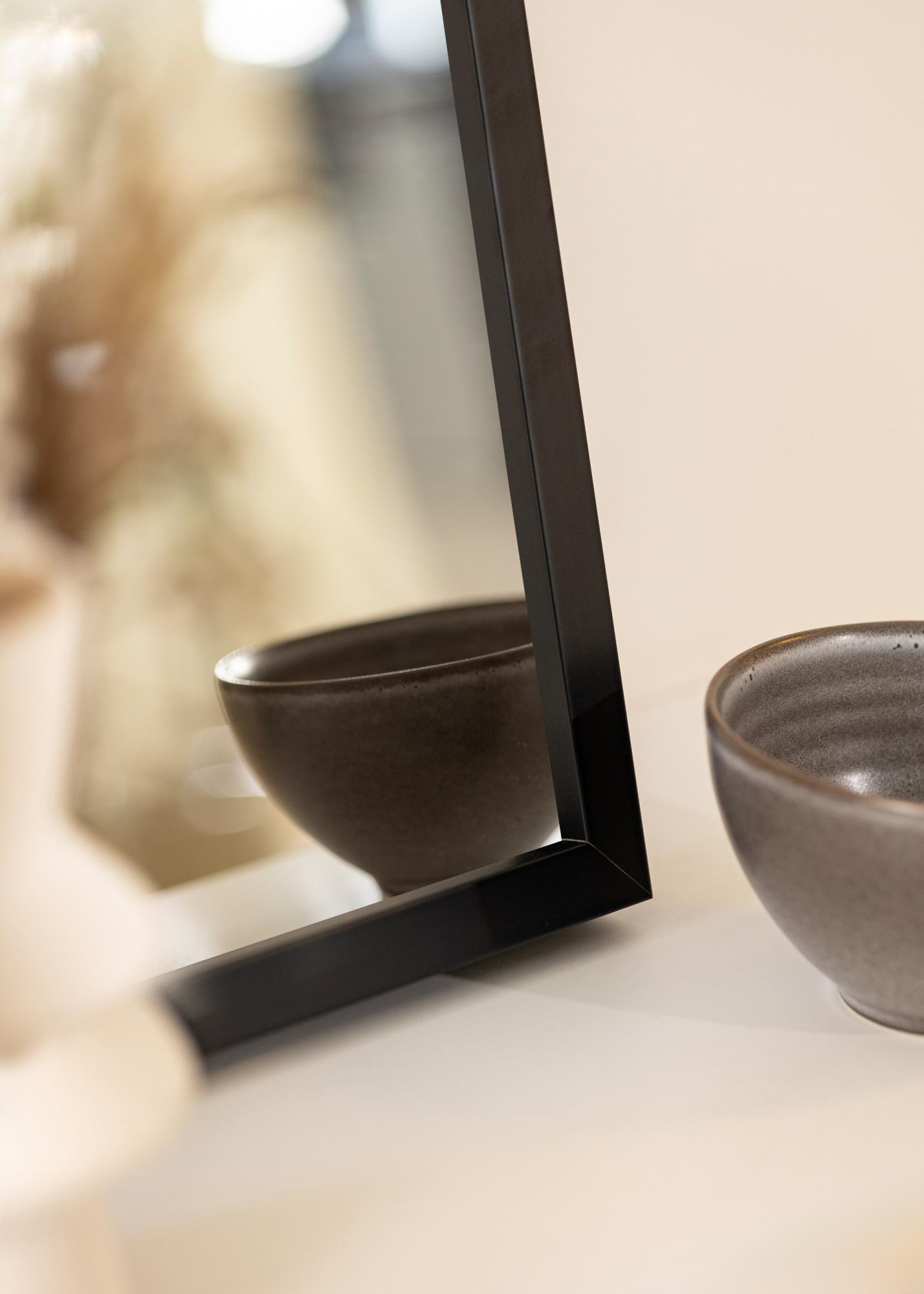 La cornice dello Specchio Thor Nero è larga 20 mm e conferisce allo specchio una cornice discreta ma comunque evidente. Il colore nero della cornice crea un bel contrasto con il vetro dello specchio e contribuisce a un aspetto sofisticato. Con una profondità di 40 mm, lo specchio ha una sensazione robusta senza essere ingombrante, rendendolo facile da posizionare anche in stanze più piccole o spazi ristretti.
