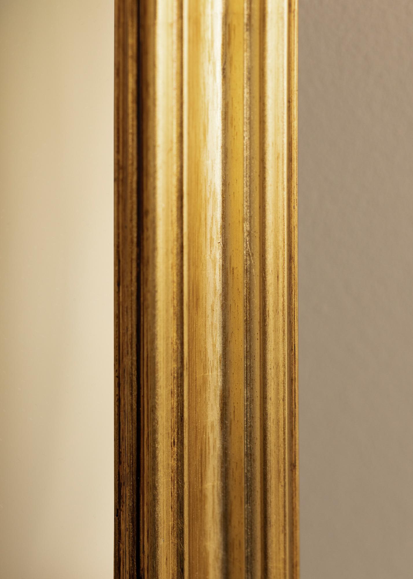 Questo specchio ha un bellissimo colore oro con morbidi profili arrotondati che conferiscono un aspetto classico e sofisticato. Il caldo colore oro presenta sfumature sottili e una superficie leggermente invecchiata, che contribuisce a un'espressione senza tempo adatta a decorazioni sia moderne che tradizionali. Lo specchio può facilmente diventare un elemento centrale della tua stanza, indipendentemente da dove lo posizioni, sia nell'ingresso, nel soggiorno o nella camera da letto.