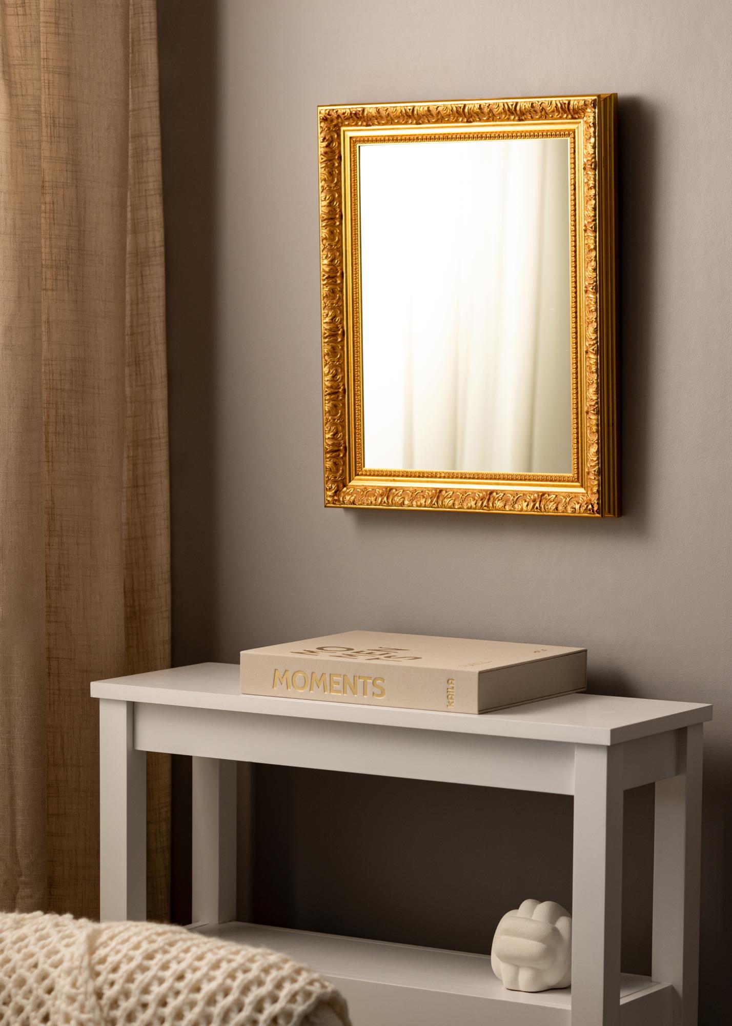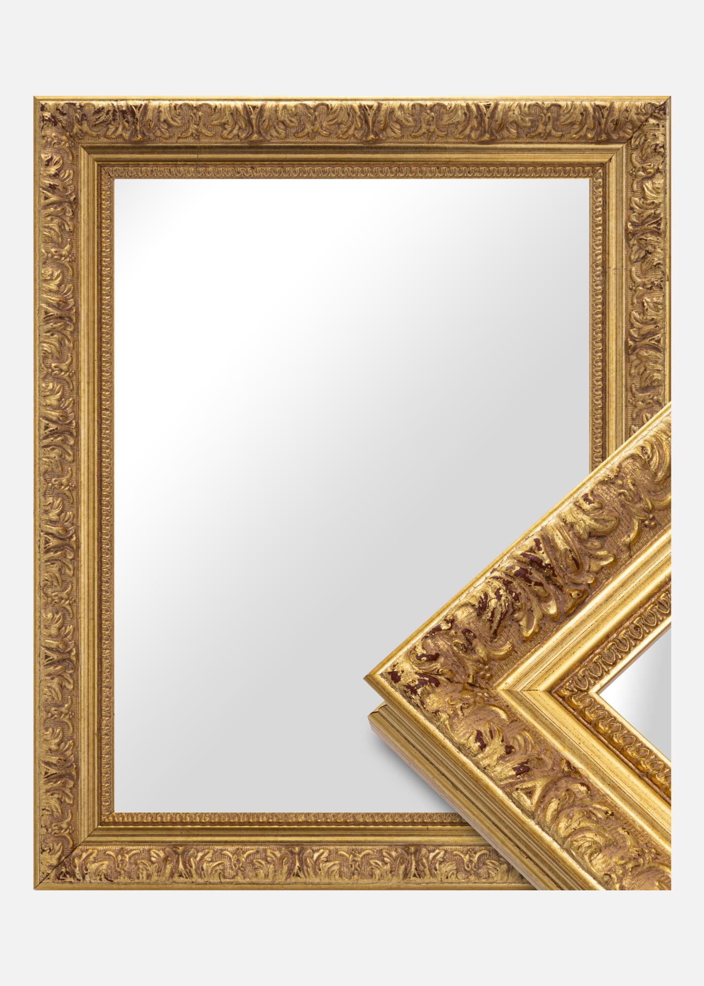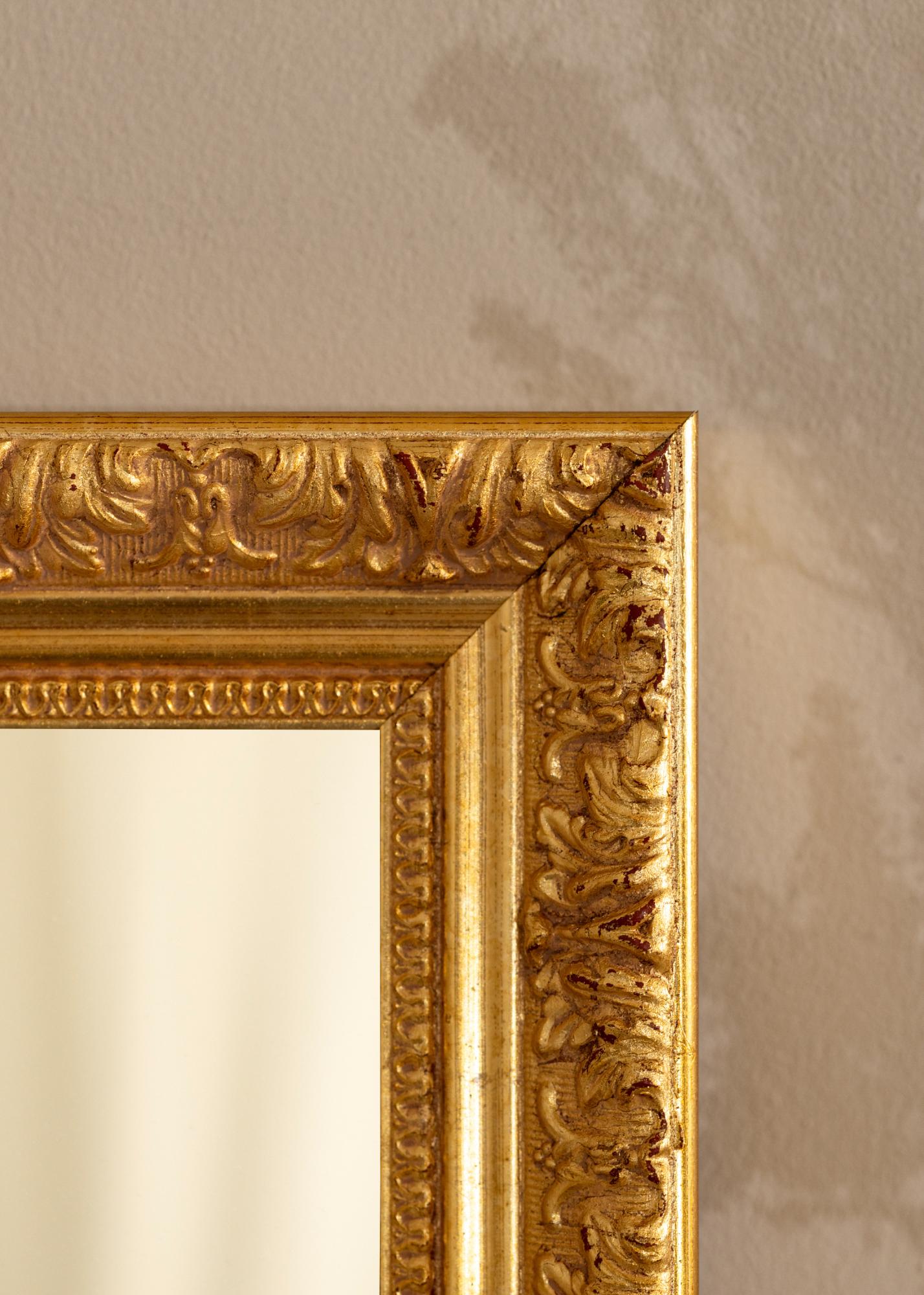 Specchio Vesta Oro è uno specchio su misura che produciamo per soddisfare le tue esigenze. Con il suo design classico e il colore dorato elegante, diventa un elemento di stile in qualsiasi stanza. La cornice dello specchio è larga 51 mm e ha una profondità di 48 mm, conferendole una sensazione robusta e solida.