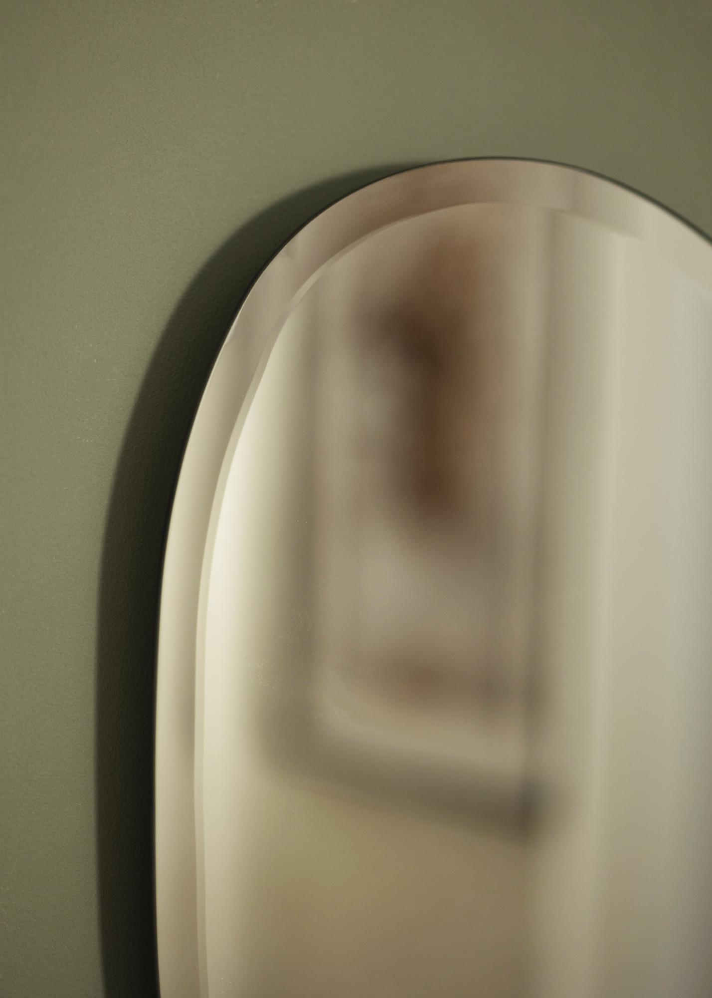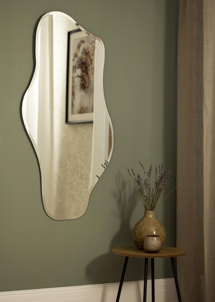 Scopri uno specchio che unisce funzionalità con un'estetica unica - uno specchio che riflette non solo la tua immagine ma anche il tuo senso di stile. Con misure di 55x110 cm, questo specchio è un pratico ed elegante elemento d'arredo per la tua casa. Il suo design è elegante e fluido, con una distintiva forma organica accentuata dal sofisticato bordo sfaccettato, che dà un tocco di classe a qualsiasi stanza.