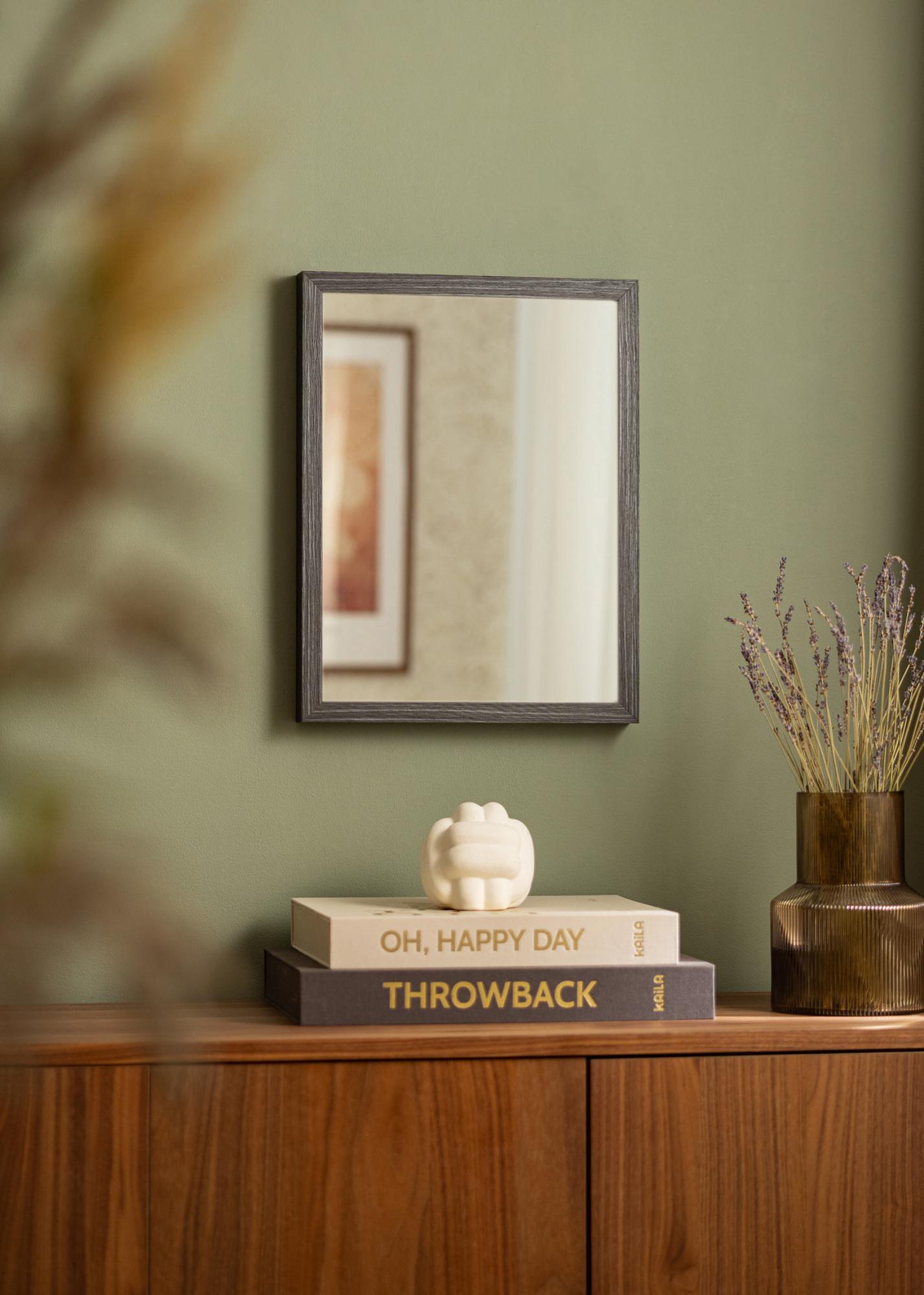 Lo specchio Wood Selection Grey I è uno specchio su misura che produciamo per soddisfare esattamente le tue esigenze. Con il suo colore grigio e la finitura in legno macchiato scuro, questo specchio offre un design elegante e senza tempo che si integra nella maggior parte degli stili di arredamento. La venatura naturale del legno corre lungo i bordi e conferisce allo specchio un carattere unico, mentre la superficie opaca esalta la sensazione autentica del legno.