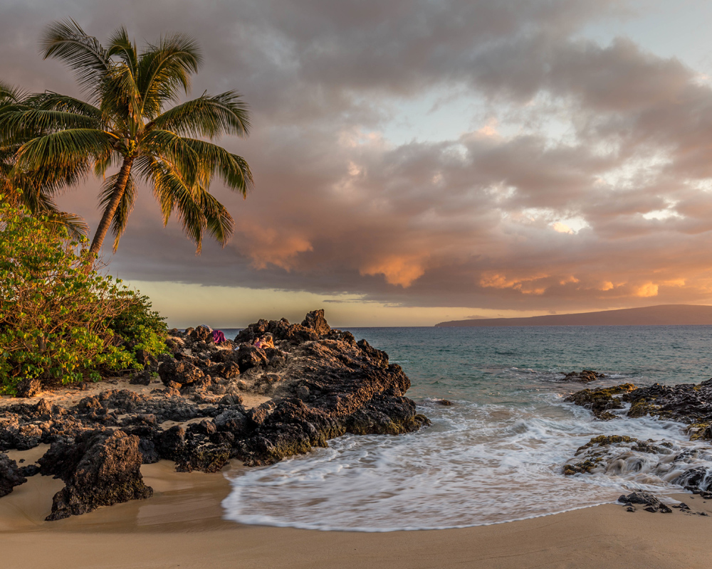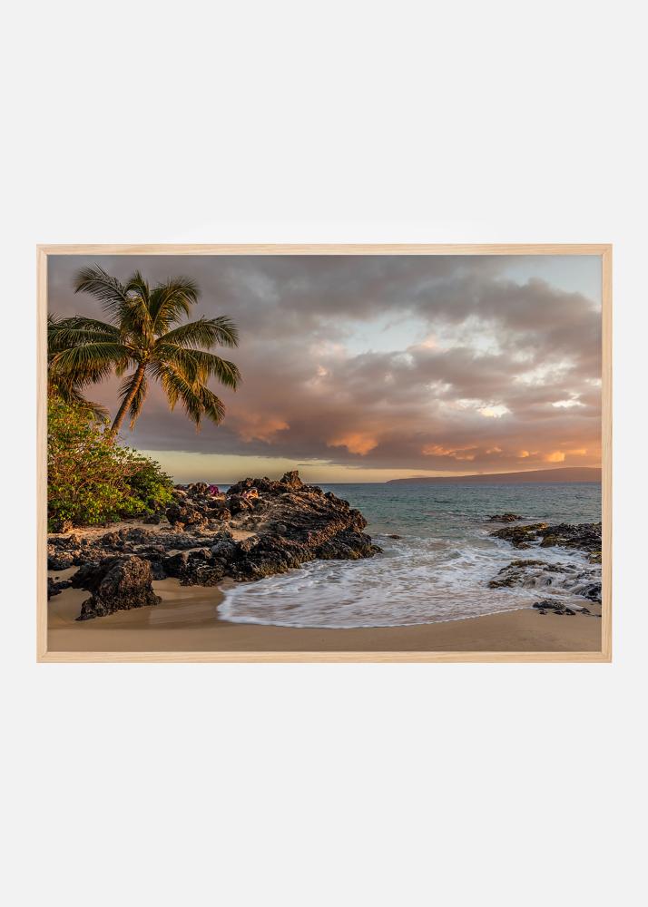 Una spiaggia al tramonto, un cliché bellissimo che è un must per gli amanti del tiki o del tema tropicale. Poster con la classica palma che si protende oltre il bordo della spiaggia negli ultimi raggi dorati del sole. La fotografia sarà bella in una cornice dal look consumato dal tempo o in un colore vivace per abbinarsi all'arredamento tiki.