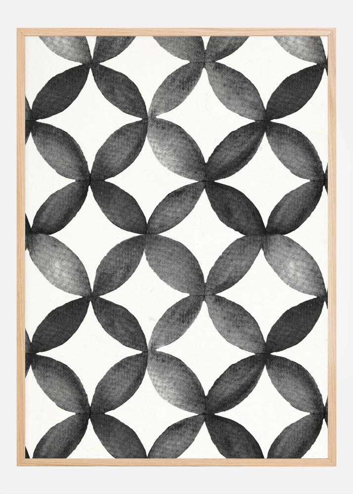 Questo poster è un omaggio alla forza estetica dei motivi geometrici. Il motivo ricorrente è composto da una serie di piante con foglie interconnesse in eleganti sfumature di nero e bianco. Creano un motivo in costante flusso che è sia affascinante che rilassante da osservare. Questa stampa unisce l'ispirazione tradizionale dalla natura con uno stile grafico moderno, rendendola un'aggiunta sofisticata a qualsiasi casa.