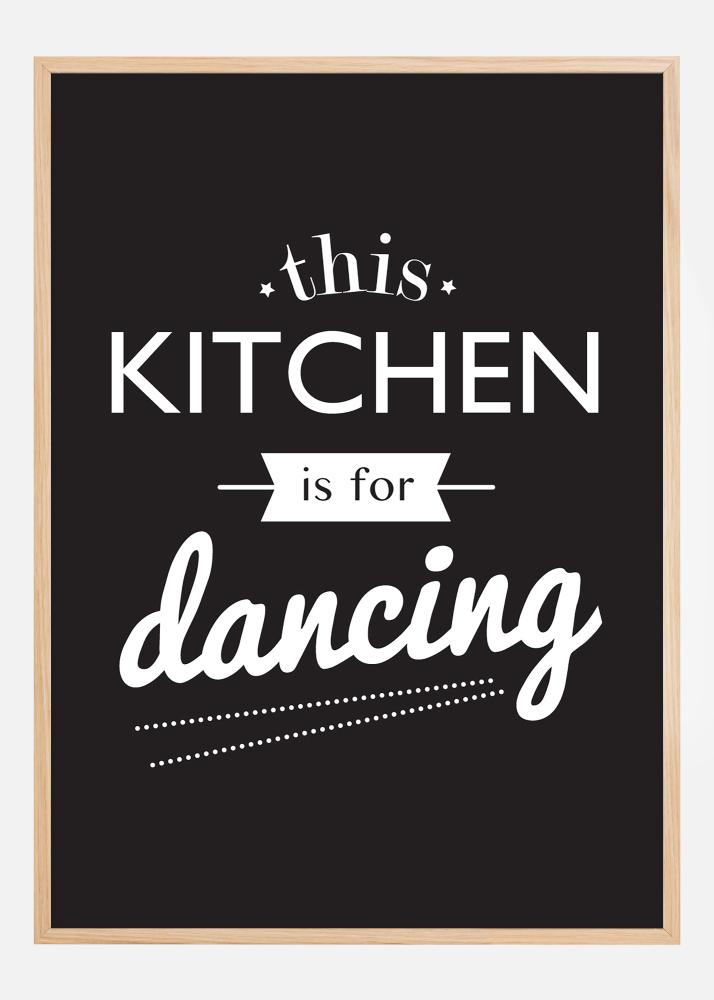Tutti sanno che la cucina è il cuore della casa. È lì che amici e famiglia si riuniscono per feste, celebrazioni e cene del weRovereend. Inoltre, la maggior parte dei pavimenti delle cucine sono perfetti per scatenarsi in balli sfrenati! Questo elegante poster aggiunge una sensazione piacevole alla tua cucina e ti incoraggia quando devi occuparti delle noiose faccende domestiche. This Kitchen is for Dancing ha un fondo nero e una stampa bianca con testo "This kitchen is for dancing". Ogni parola è stampata con un carattere tipografico diverso, che conferisce un carattere giocoso. Appendilo così com'è o completalo con una cornice vivace. Scegli tra 6 formati diversi!