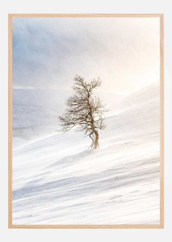 Questa suggestiva poster raffigura un albero solitario in un paesaggio invernale coperto di neve, dove il vento accarezza morbidi cumuli e la luce crea un’atmosfera sognante e serena. Il soggetto ha uno stile minimalista che si adatta perfettamente come poster o stampa nelle case moderne, negli interni nordici e negli ambienti dove si desidera creare armonia e tranquillità. Il paesaggio essenziale rende facile abbinare questa immagine ad altri poster in una parete decorativa.