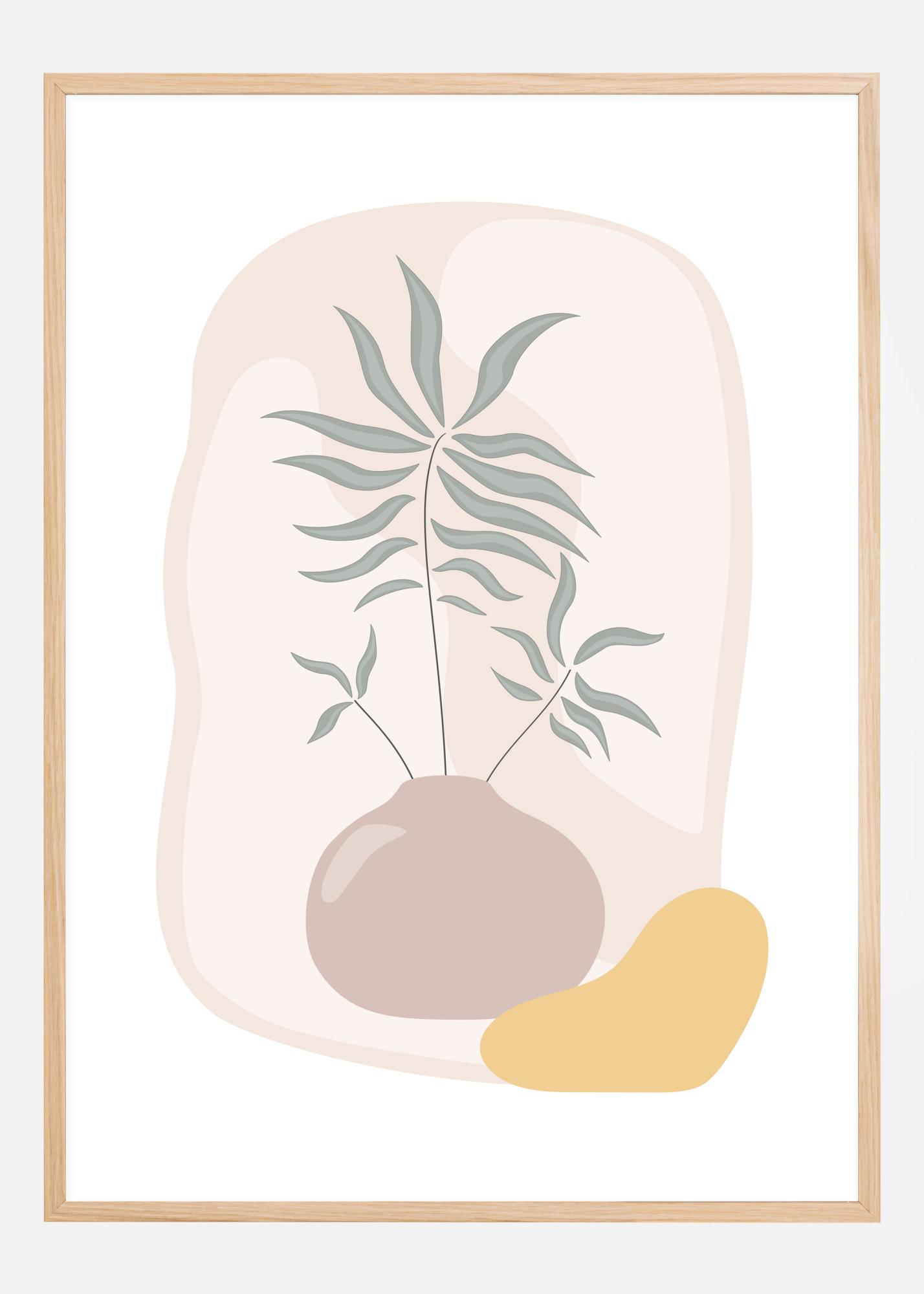 Un poster stilizzato con un vaso contenente una pianta verde che spunta da esso. Altre forme e colori strani riempiono lo sfondo e rendono questa opera interessante ma leggermente astratta. Abbinatela a un disegno nello stesso stile per creare una propria mini galleria a casa.