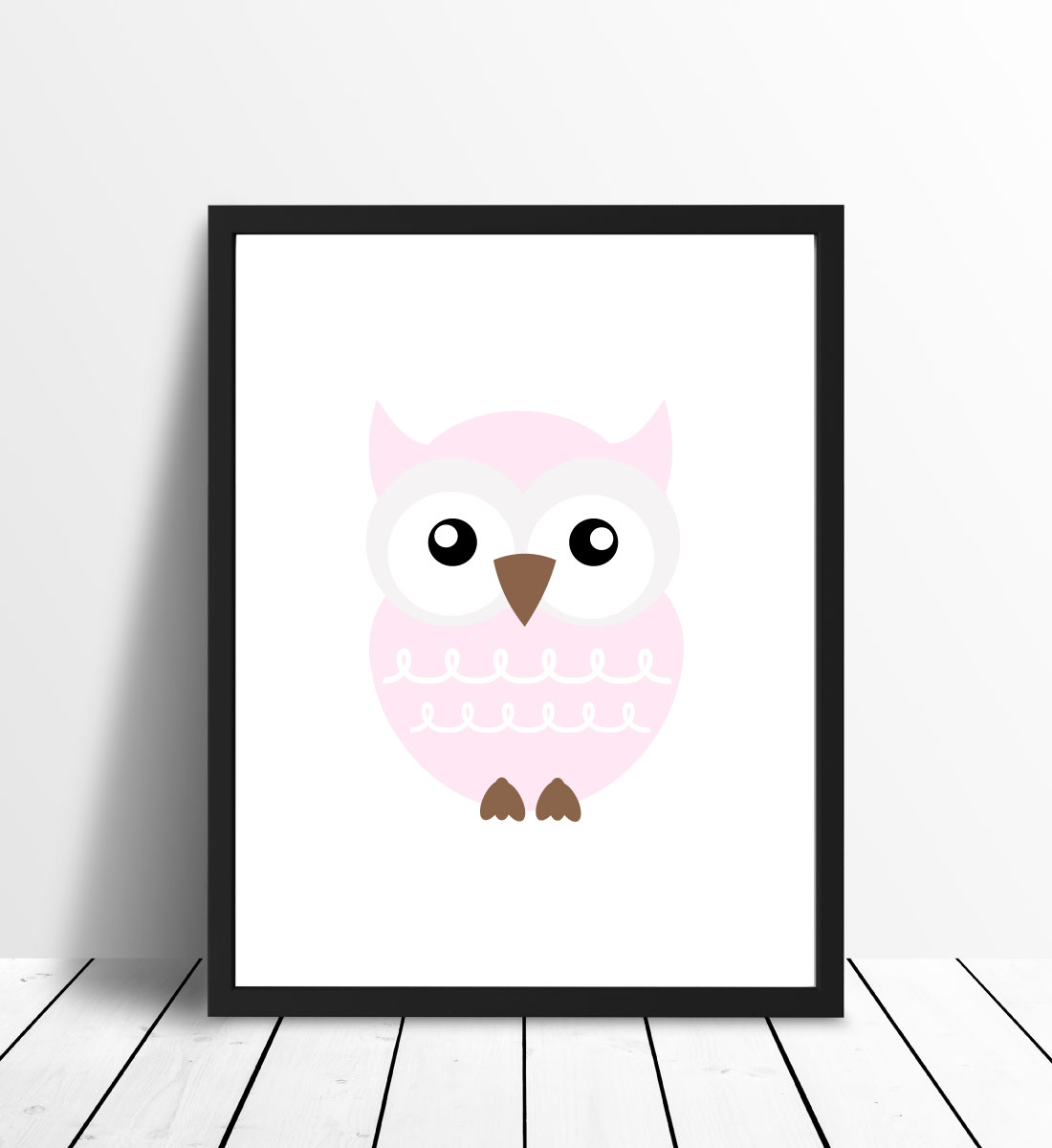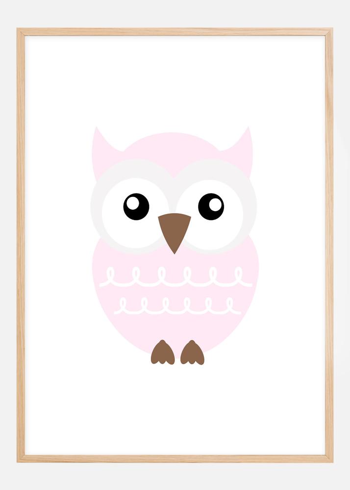 Poster carino con il gufo numero uno, il gufo. L'illustrazione di un gufo stilizzato rosa-rosa su sfondo bianco è diventata un classico moderno. Il motivo si adatta bene sia al salotto che alla stanza dei bambini e si abbina particolarmente bene a un arredamento che riprende il colore del quadro. Combina con altri uccelli o animali per una sensazione selvaggia.