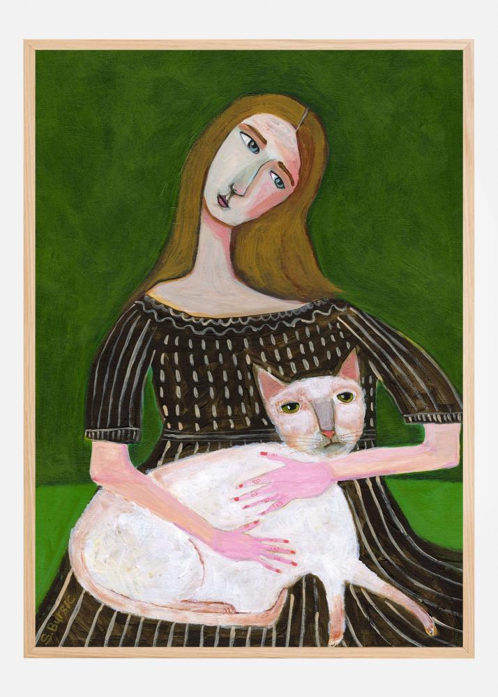 vintage lady with white cat Poster