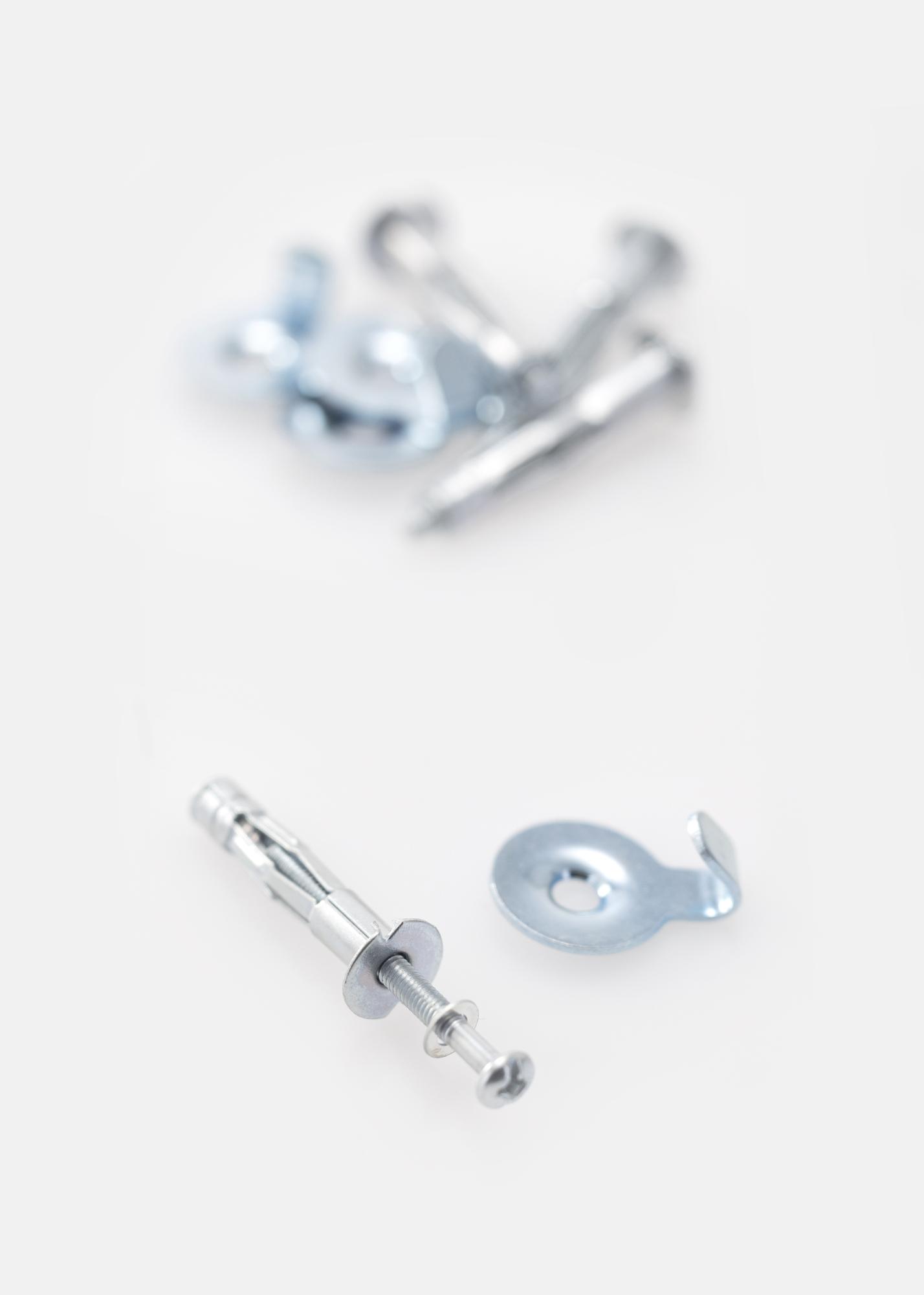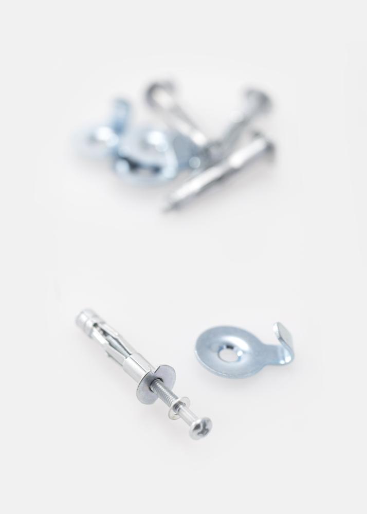 4 tasselli per cartongesso e viti M4 per pareti in cartongesso da 13 mm. La fessura nel tassello è adatta per una dimensione di vite di 6 mm.