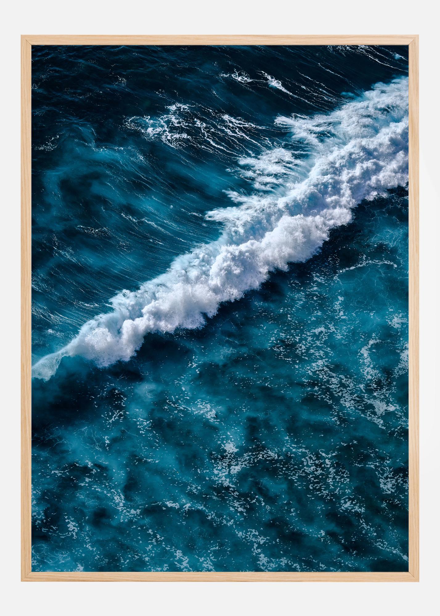 Questo poster dinamico cattura la potente forza del mare in uno scatto di un'onda che si infrange. Con sfumature di blu marino profondo e spumeggianti creste bianche, il contrasto non è solo sorprendente ma anche pieno di movimento e vita. La superficie del mare, viva e mutevole, cattura l'occhio dello spettatore e lo guida attraverso il ritmo e la danza naturale dell'onda.
