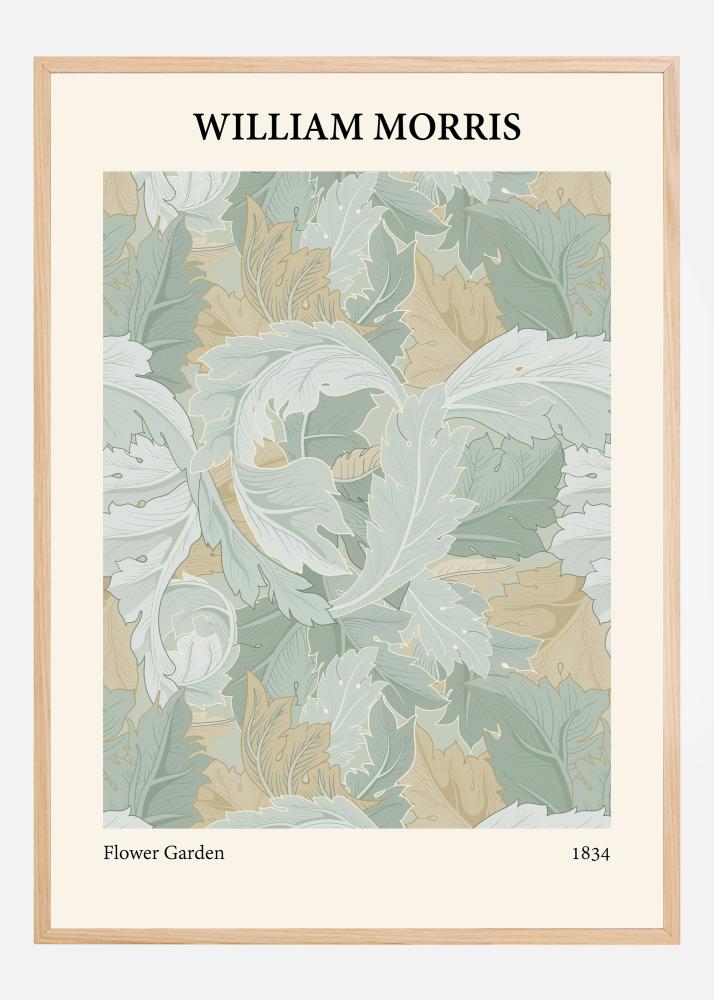 Questo elegante e affascinante poster è un omaggio a William Morris e al suo indimenticabile contributo al design e all'arte. Con il suo motivo "Flower Garden", questa stampa presenta una sofisticata composizione di fogliame e forme floreali che si intrecciano in una tavolozza di colori verdeggianti calmanti e caldi toni beige. Ogni elemento è progettato con la caratteristica attenzione ai dettagli di Morris, creando un senso di profondità e complessità apprezzabile ad ogni sguardo.
