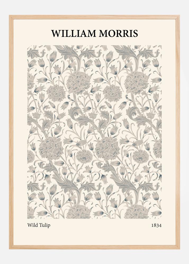 Questo poster di William Morris, denominato "Wild Tulip", è un'elegante interpretazione di fiori selvatici, composto con grande abilità e cura. Il motivo è un labirinto di tulipani e foglie, eseguito in tonalità sottili di beige e grigio su uno sfondo caldo color crema, rendendolo un'opera ideale per chi cerca di creare un ambiente rilassato e sofisticato. La ricchezza di dettagli nelle illustrazioni dimostra la mano maestra di Morris e la sua capacità di trasformare scene quotidiane in arte.