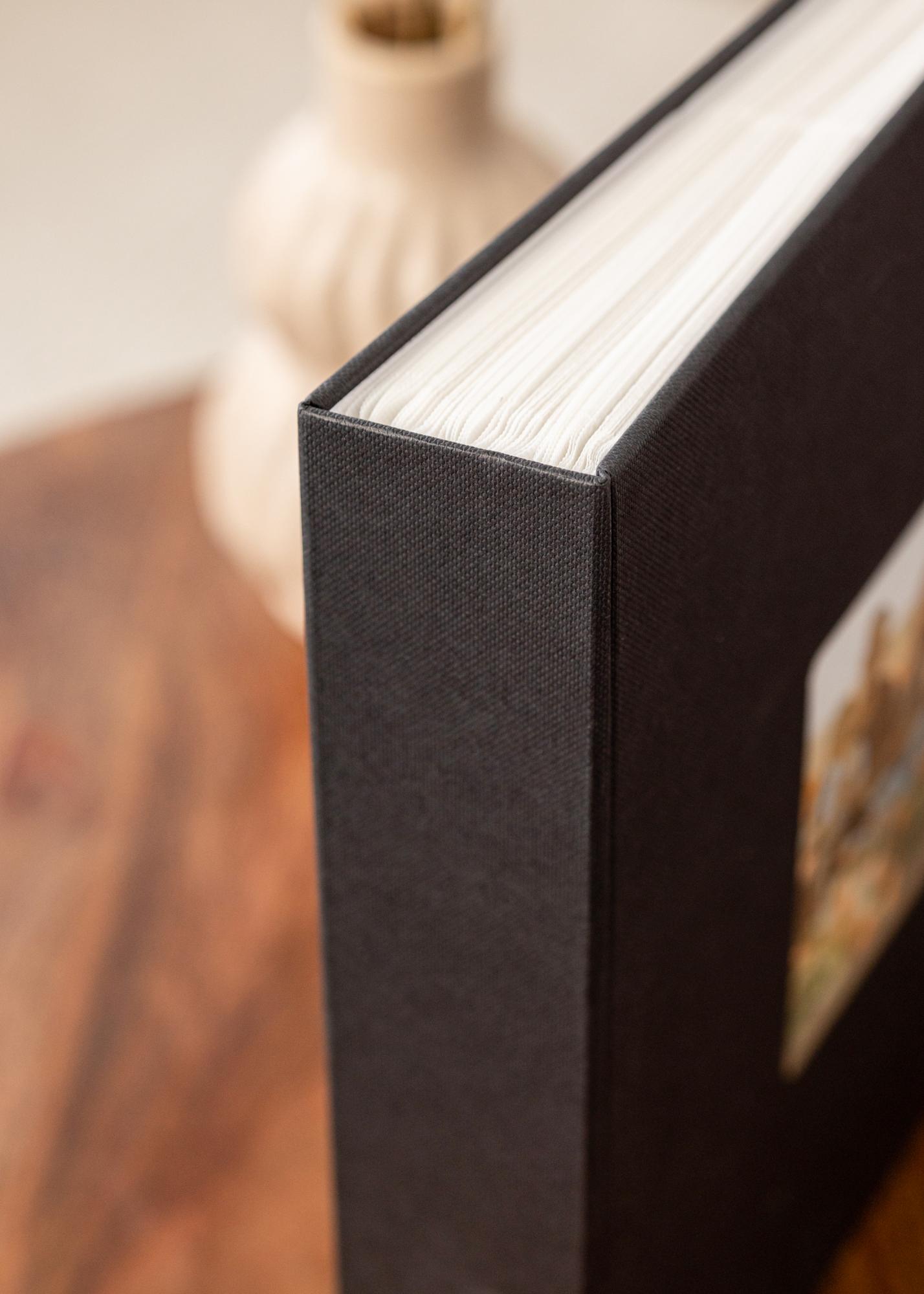 Le copertine dell'album sono di un classico colore nero che conferisce una sensazione senza tempo e sofisticata. Le pagine bianche all'interno dell'album creano un bel contrasto e mettono in risalto le tue immagini nel miglior modo possibile. L'orientamento delle immagini nell'album è sia orizzontale che verticale, offrendoti flessibilità per organizzare le tue foto proprio come desideri.