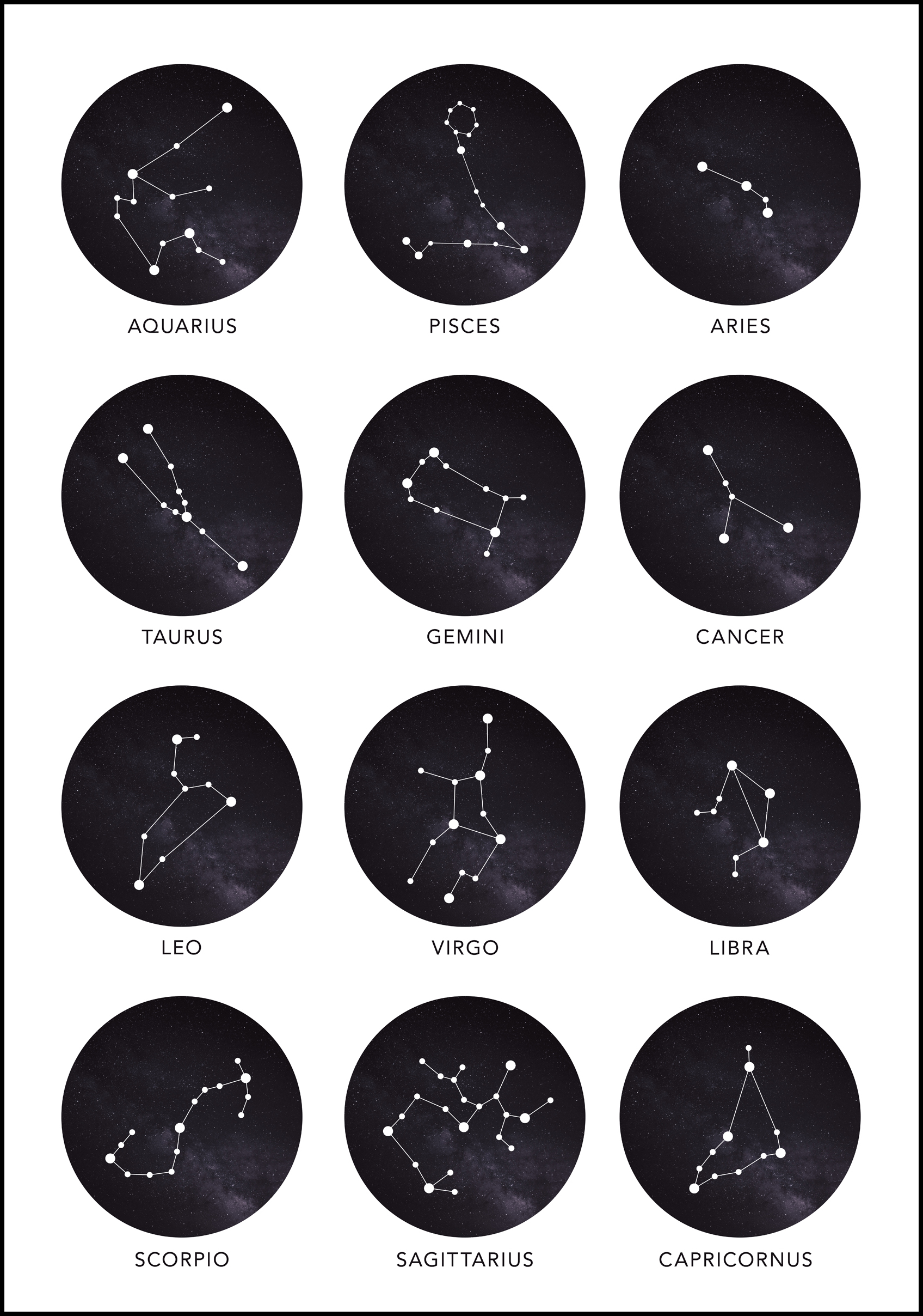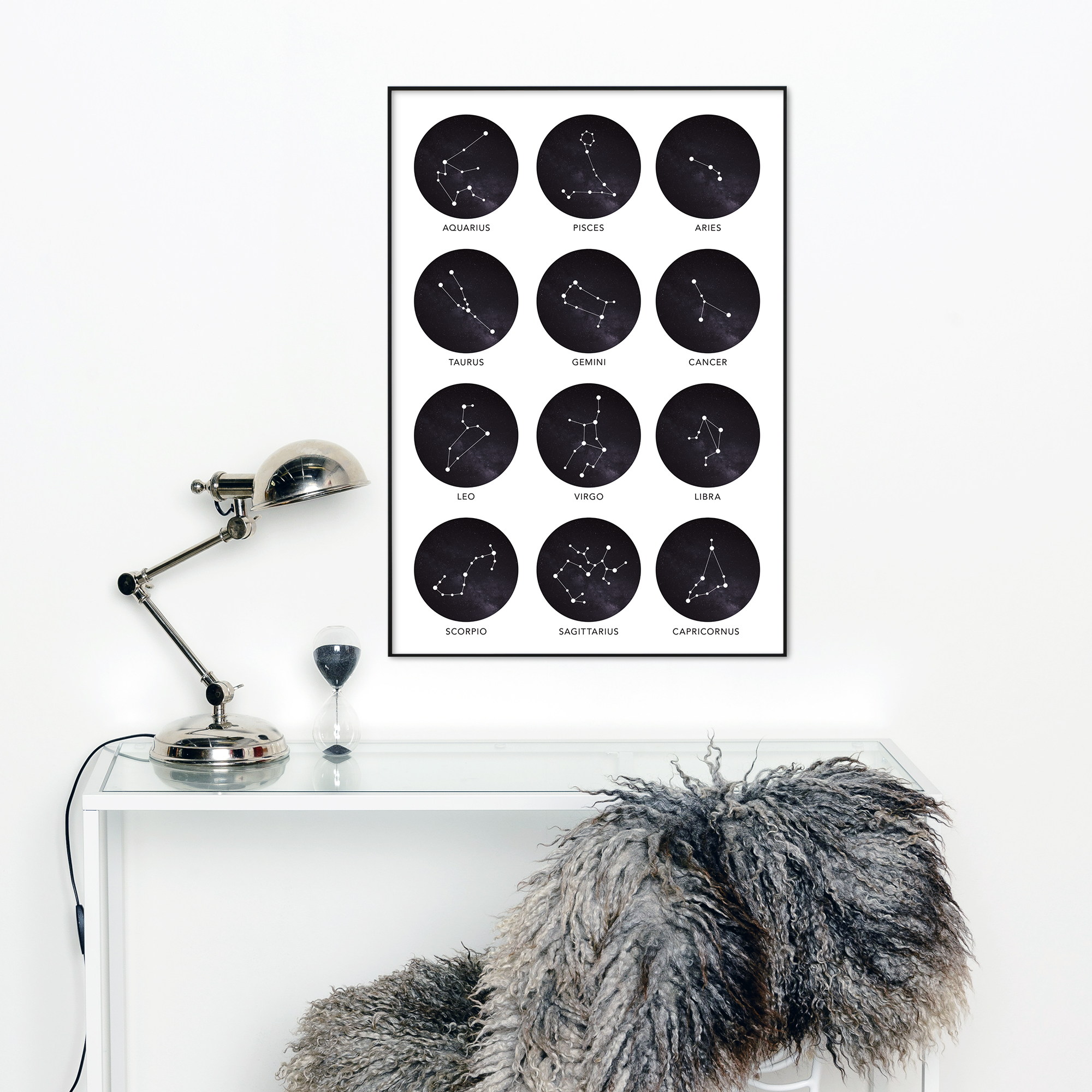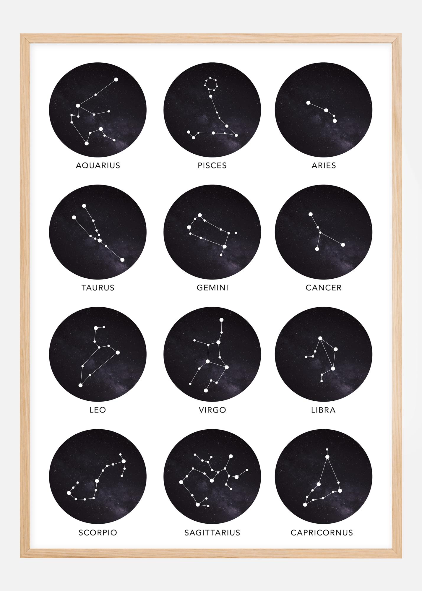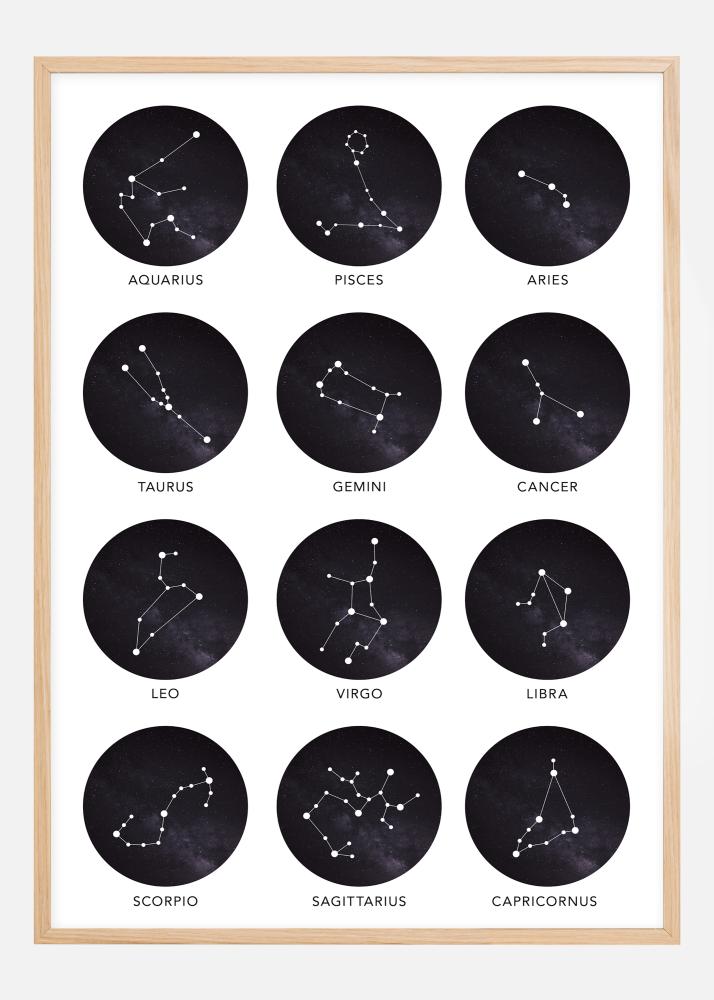 Regala un poster con i segni zodiacali a qualcuno a cui tieni o coccolati con qualcosa di bello. Questo elegante poster ha motivi di tutti i segni zodiacali e sotto i motivi ci sono i nomi dei segni in inglese. Non dimenticare di scegliere una cornice abbinata al tuo poster!